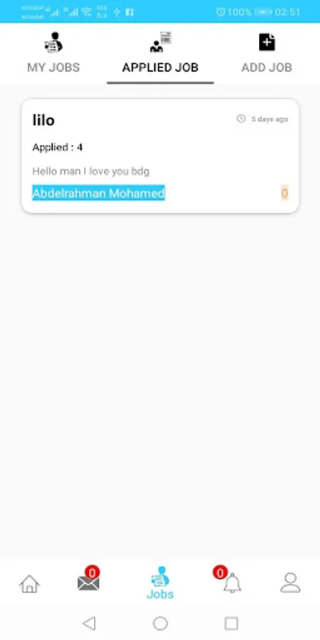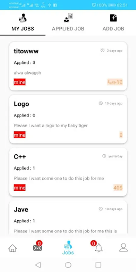 اما ان كنت صاحب وظيفه فلا تترد في اضافه وظيفه في المجال الذي تفضله و سيقدم كثيرين في الوظيفه اقبل الافضل و تحدث منهم و لا تخشي فلا يوجد عموله للتطبيق ابدا فستقوم باضافه وظيفه و قبول المقدم فيها و انهاء الطلب كل ذلك و اكثر مجانا