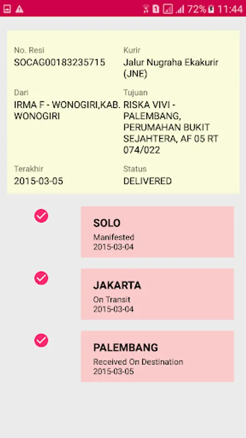 CHECK CHECK: JNE, TIKI, POS, WAHANA, SICEPAT, J&T EXPRESS, NINJA XPRESS, POS INDONESIA, SAP EXPRESS and others ...