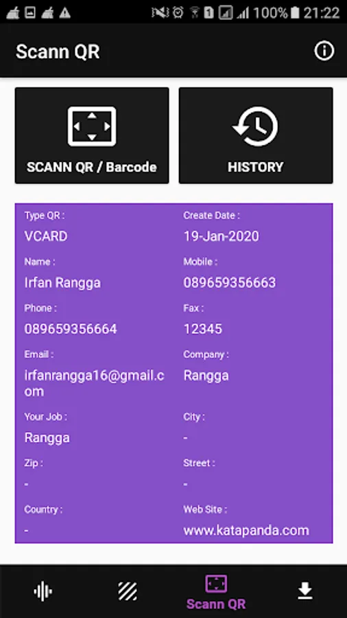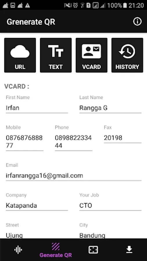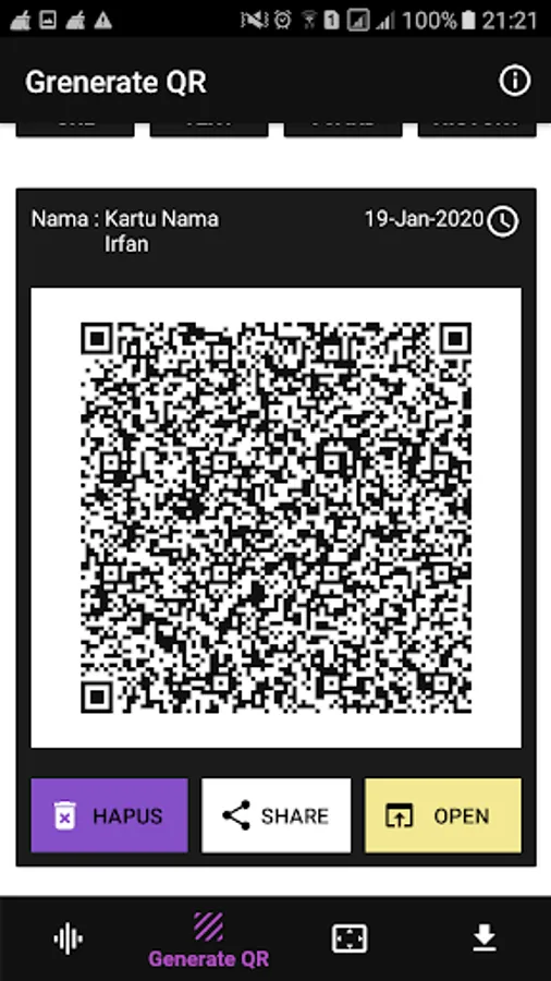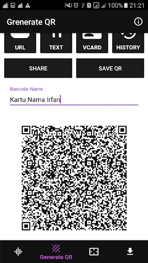QR & Barcode Types: Text, URL (can be maps), Name Card (Vcard) etc.