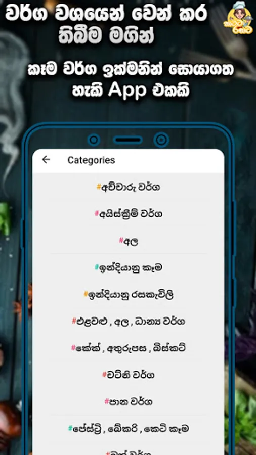 - කෑම වට්ටෝරු වෙන වෙනම වෙන් කර තිබීම සහ Search කර කෑම වට්ටෝරු සොයා ගැනීමෙ පහසුව.