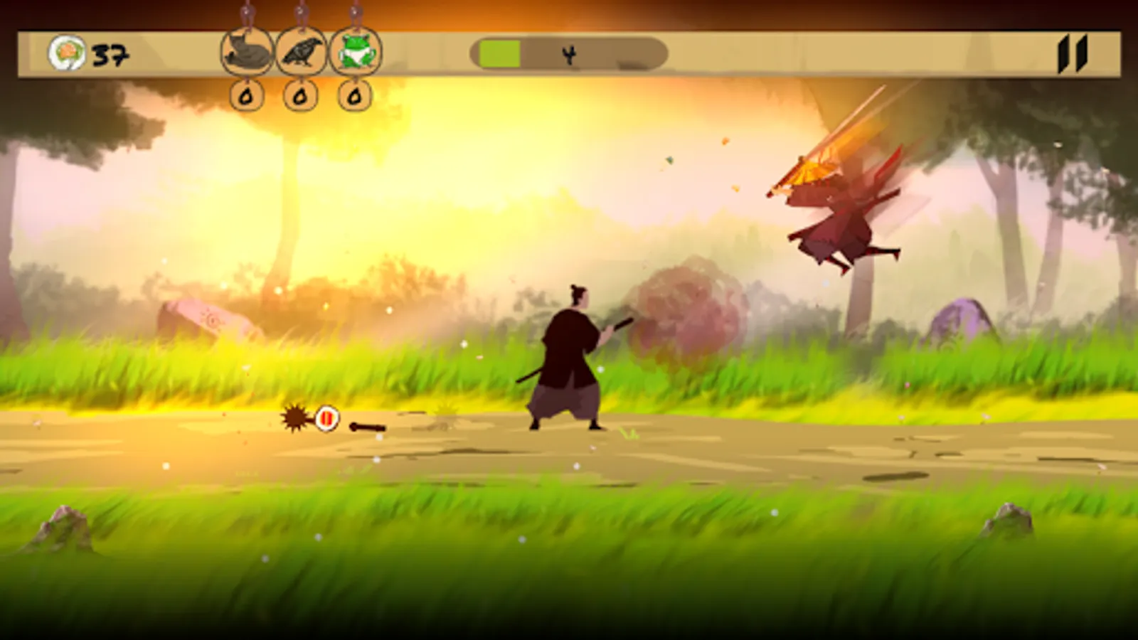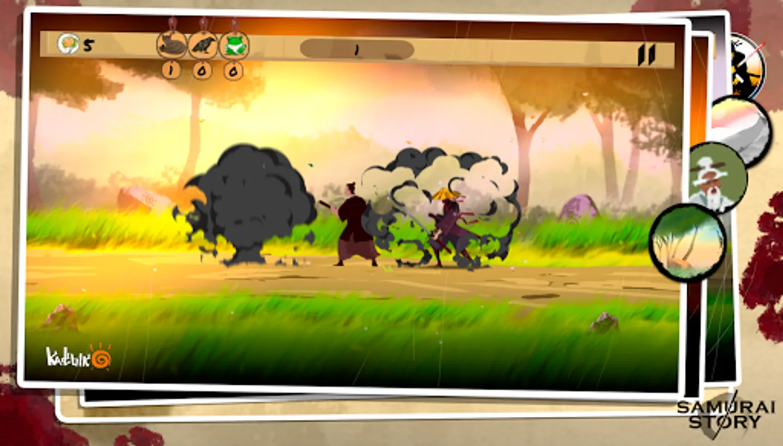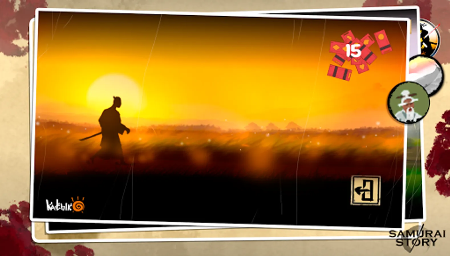 Japan, the era of samurai, shinobi and frogs eating the rolls. "Samurai Story" is an arcade mobile game. Be quick like ninja and clever like a samurai. Hit the flying arrows, shurikens, spears. Catch the rolls and buy a netsuke. I want you to meet Mr. himura and find out the truth of his province.