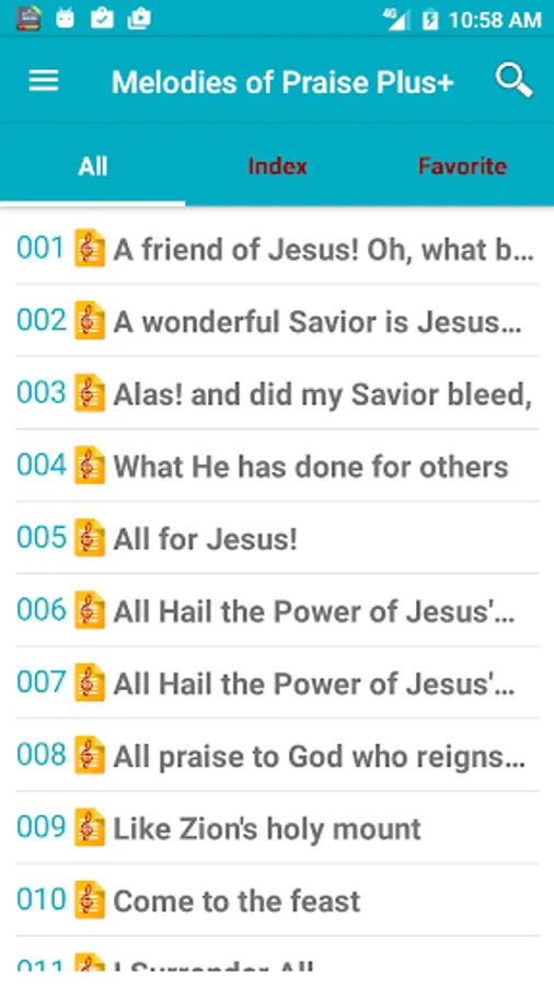 -You can add a particular hymn you like to the "Favourite" tab so that it can appear as your favourite hymn and you can still remove hymns that are no longer your favourite from the favourite tab.