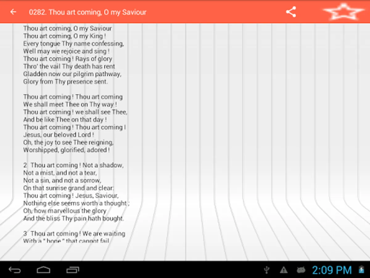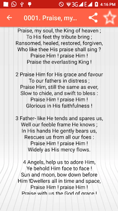 -You can share a particular hymn lyrics with your love ones via WhatsApp, Facebook, SMS, Bluetooth, Mail, etc