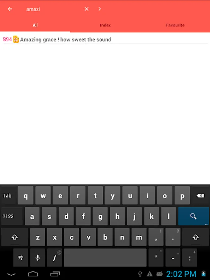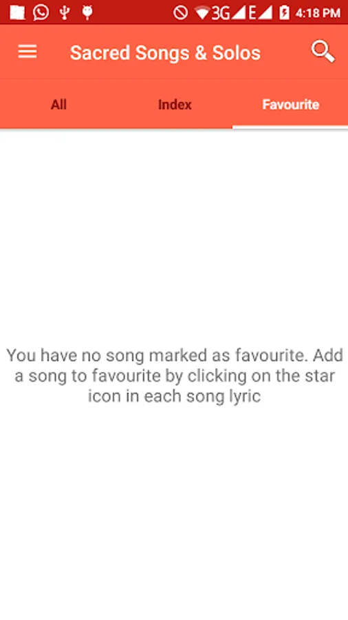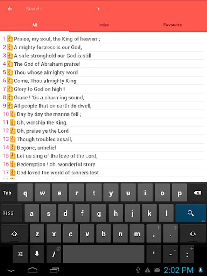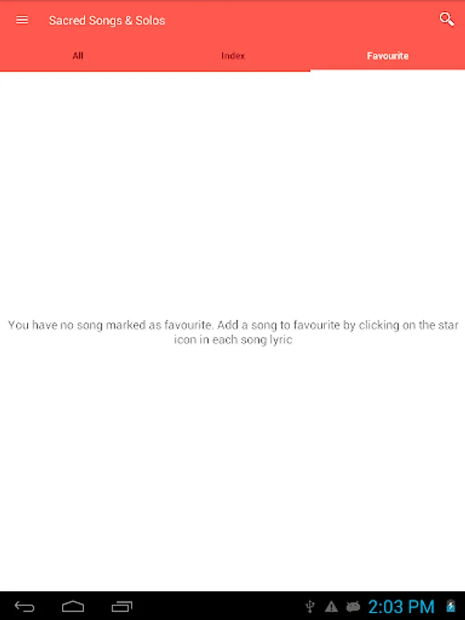 -You can add a particular hymn you like to the "Favourite" tab so that it can appear as your favourite hymn and you can still remove hymns that are no longer your favourite from the favourite tab.