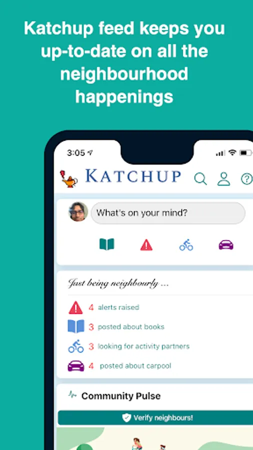 Katchup is a trusted environment where all neighbours are verified, making it safe to share things online. Every neighbour is verified by other neighbours in the community.