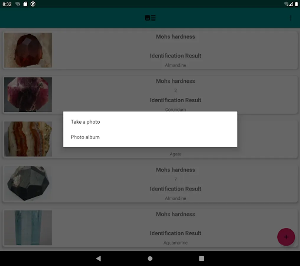 This APP uses artificial intelligence technology to help us identify minerals in their natural state through the pictures of minerals and their Mohs hardness. Compared with other complex physical and chemical methods, it is simpler and more convenient. Of course, a certain recognition accuracy must be sacrificed.