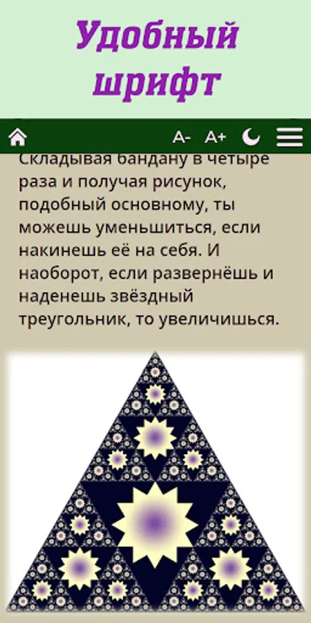 - 3 text font modes: small, medium (default), large (for the visually impaired).