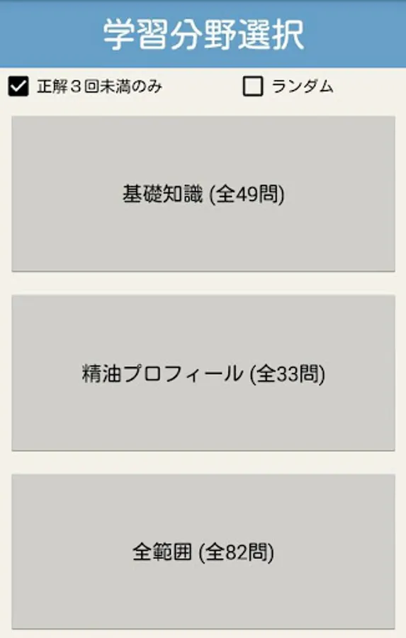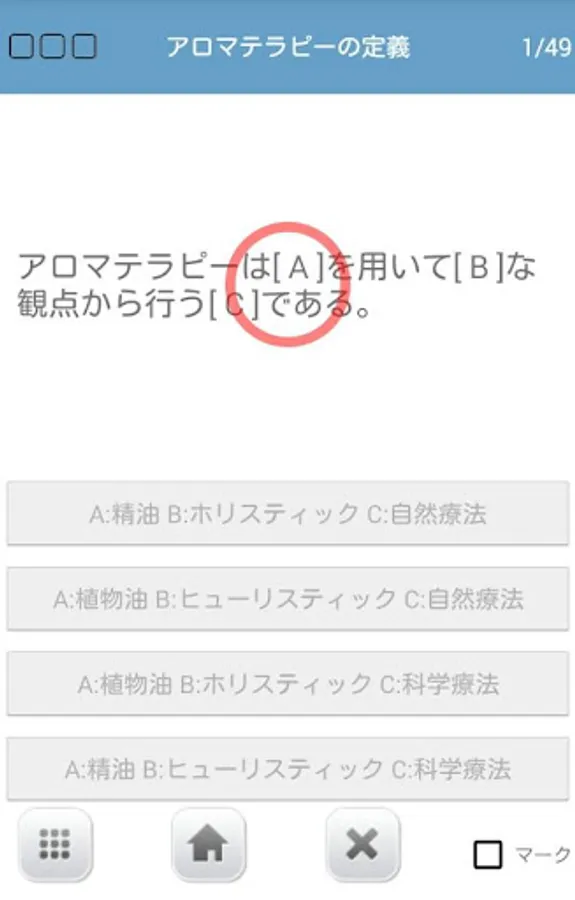 アロマテラピー検定試験用に四択で電車の中でも手軽に学習できるアプリを作成しました。