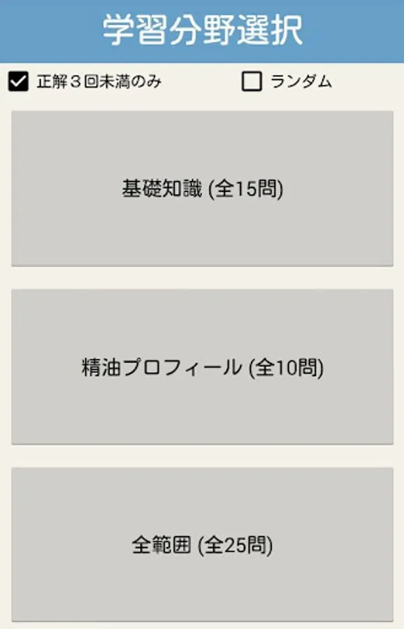 アロマテラピー検定試験用に四択で電車の中でも手軽に学習できるアプリを作成しました。