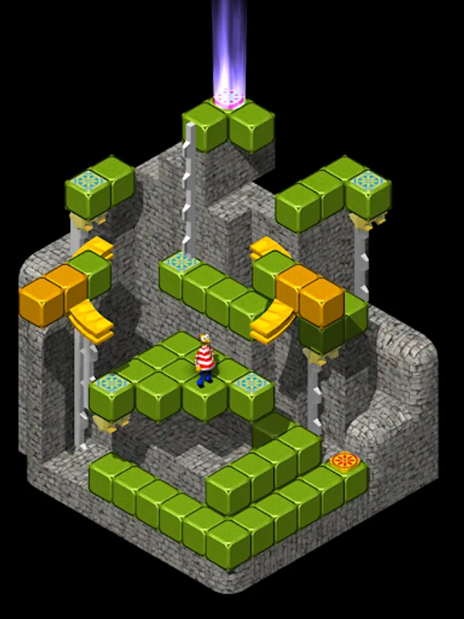 Use the elevators, teleporters and rotating structures to find your way through an intricate world of labyrinths and changing paths.