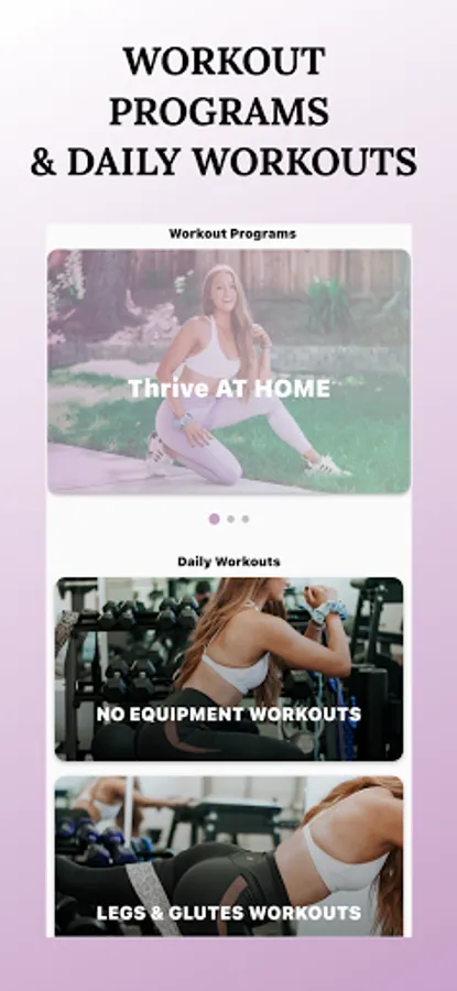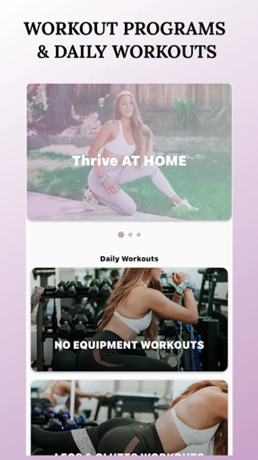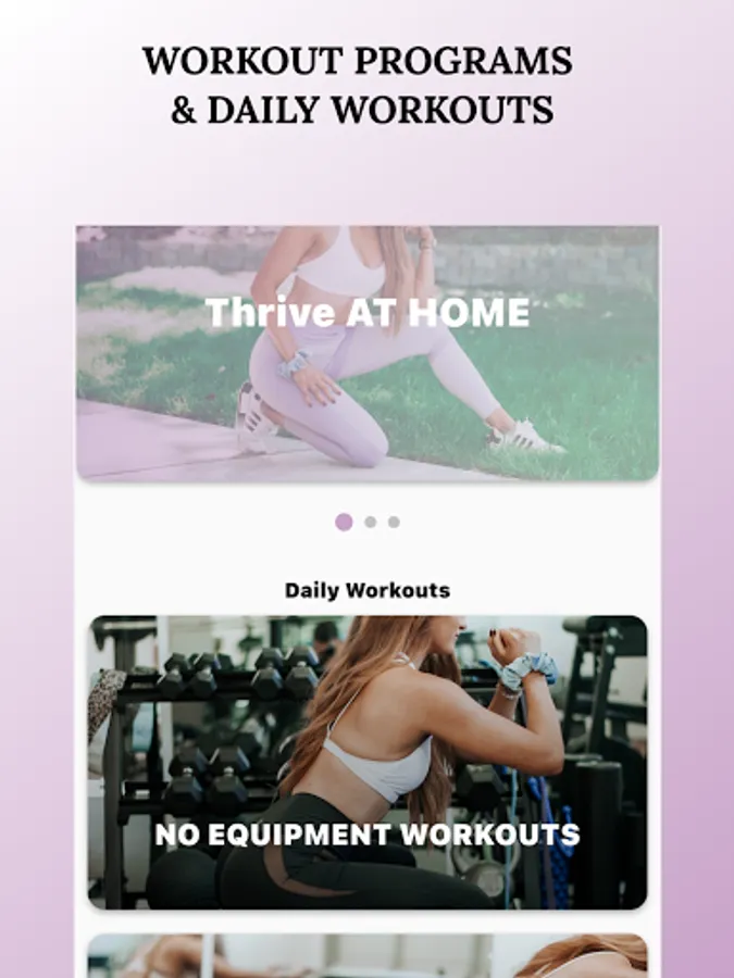 -Thrive also has daily workouts split up into different categories (Upper Body, Abs, No Equipment Workouts, Lower Body, Booty Burners, etc.) so you get to decide what type of workout you want to complete.