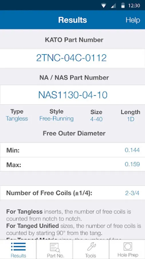 Built into the KATO App is the most comprehensive database on helical coil screw thread inserts. With four search options (KATO Part Number, Style & Size, MS/MA Number and NAS/NA Number), the KATO App makes it extremely easy to locate product & technical information, and tooling options for any Tangless or tanged screw thread insert!