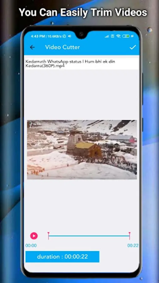 VIDEO CUTTER : TRIMMER :- Video Cutter Tools Cuts Video With Simple Steps And Save File to Your Phone.Cuting Video With Selected Time Intervals As You Like With Same Video and Audio Quality.