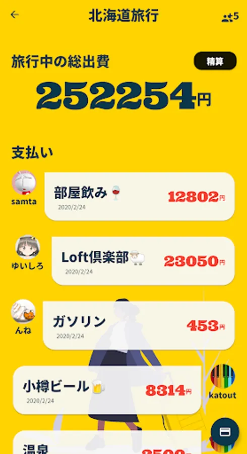 In this Tatekan, if you enter the information you paid while traveling, the cloud will share the money information between friends and it will be displayed like Line!