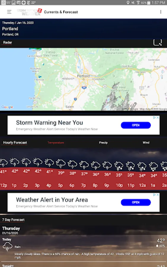 katu.com brings you an interactive weather app, putting the most precise, up to date and accurate information in your hand. - Local and national radar - Satellite cloud imagery - Current conditions based on location - Customizable weather experience based on zip code - Hourly forecast - Current temperatures - Instant severe weather alerting