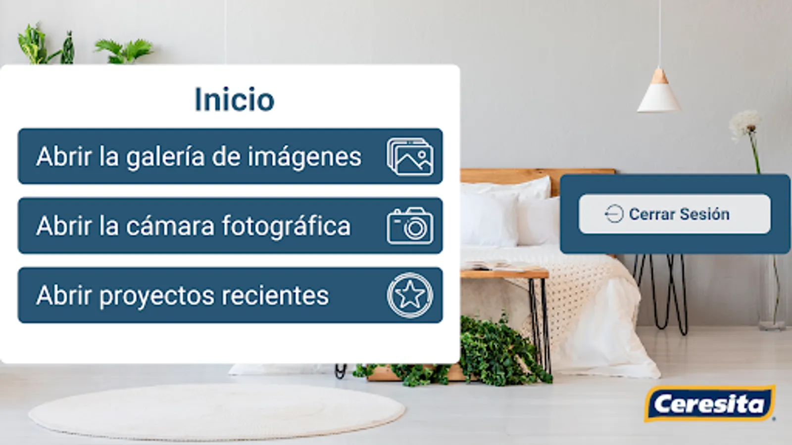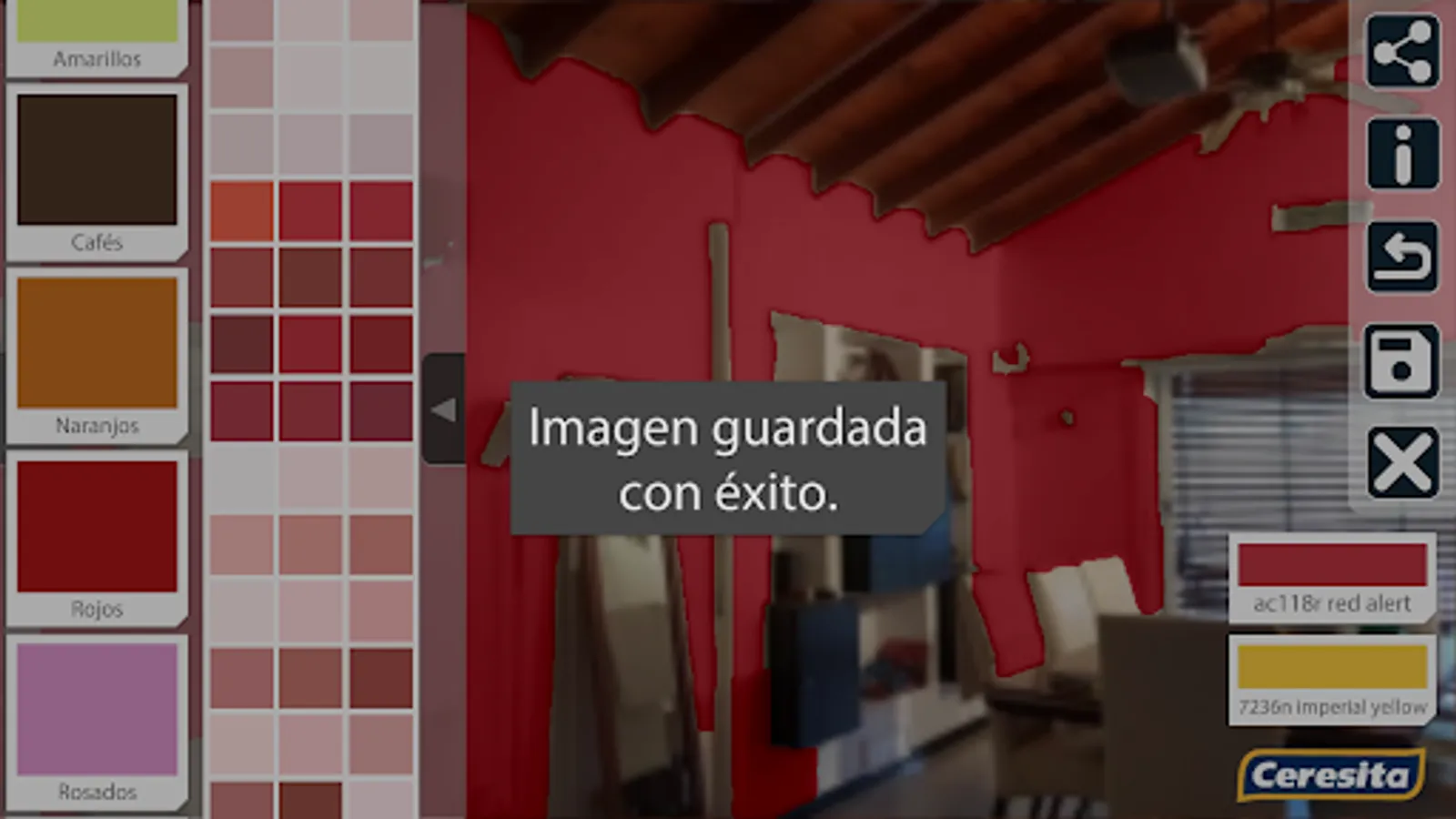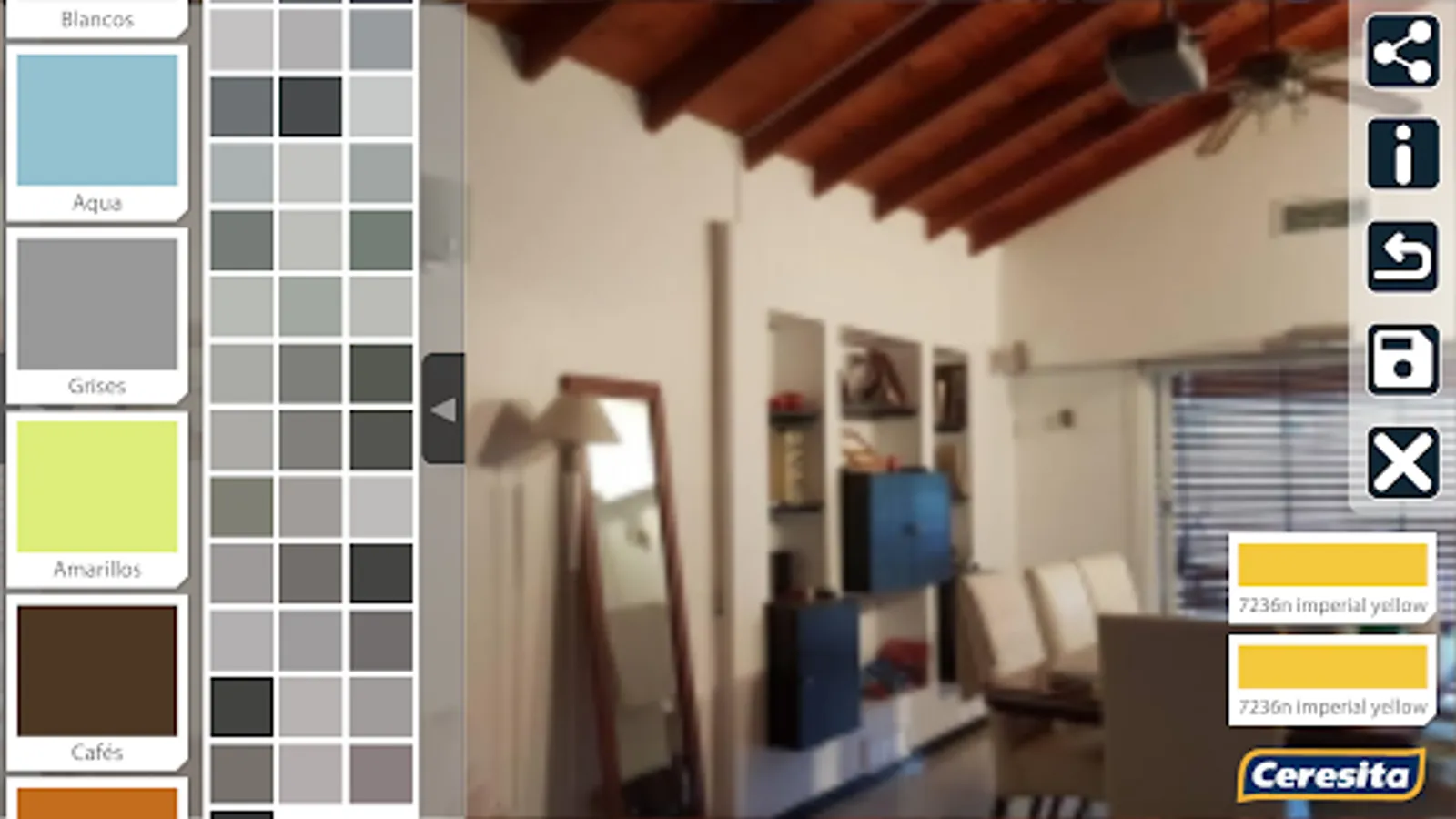 This application allows you to test the colors in the catalog of Ceresita on your wall. To do this takes a picture of the wall and then select the color you want to paint.