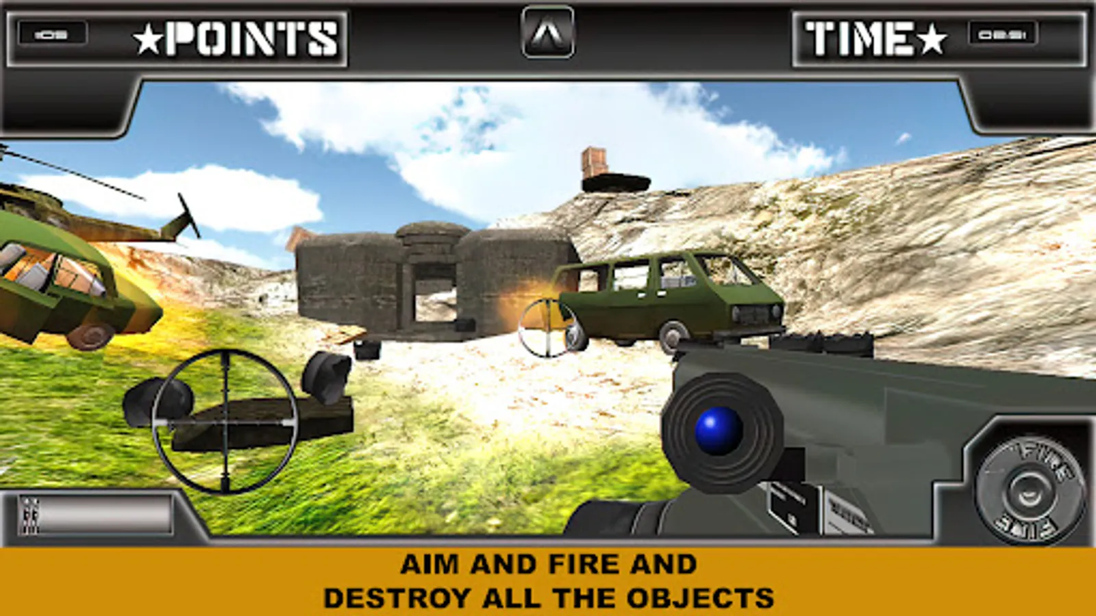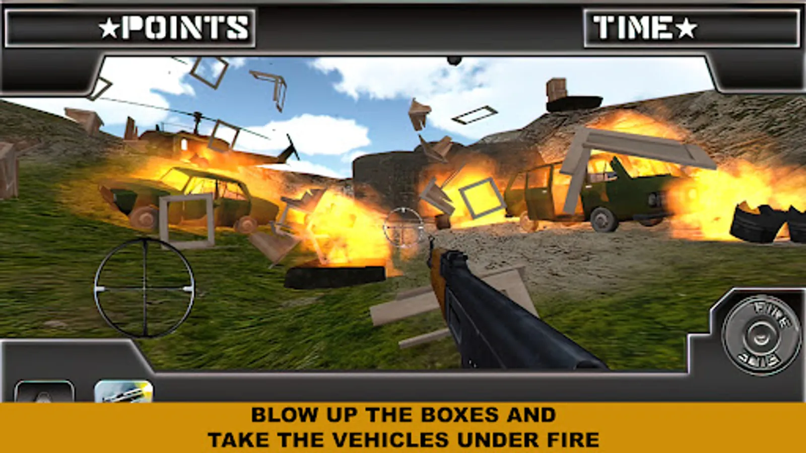 Try each weapon out and shoot down the different objects/targets in the games environment like you would be at the frontline in the real world (Xtreme war scene/battle field). Score as much points as you can.
