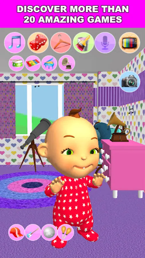 Meet Babsy the talking baby and have fun discovering all her funny activities. Take her by the hand and let her show you all the different toys she has in her bed room.