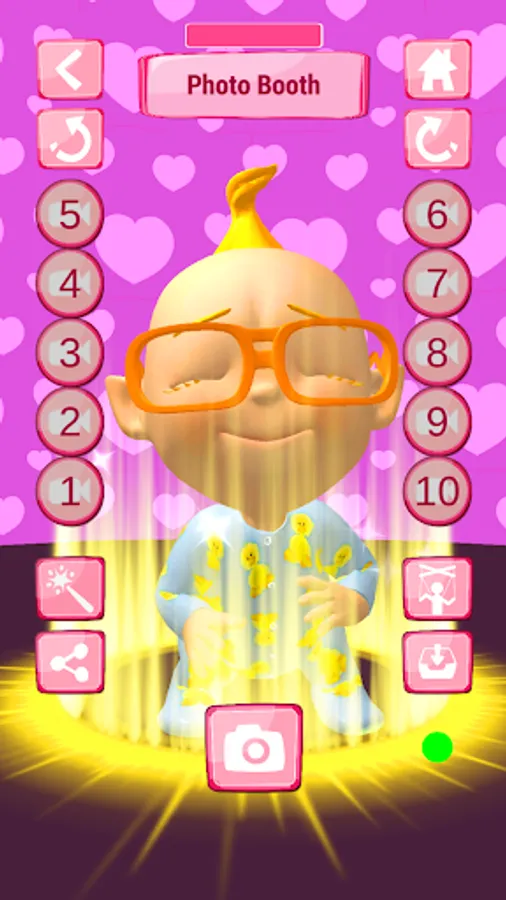 You will be able to make some pictures of your figure and add some cool backgrounds to them. Share the picture of your personal talking baby with your friends, trough Whatsapp, Twitter, Skype, another Messenger Tool or simply upload them to Facebook, Flickr, Dropbox etc.
