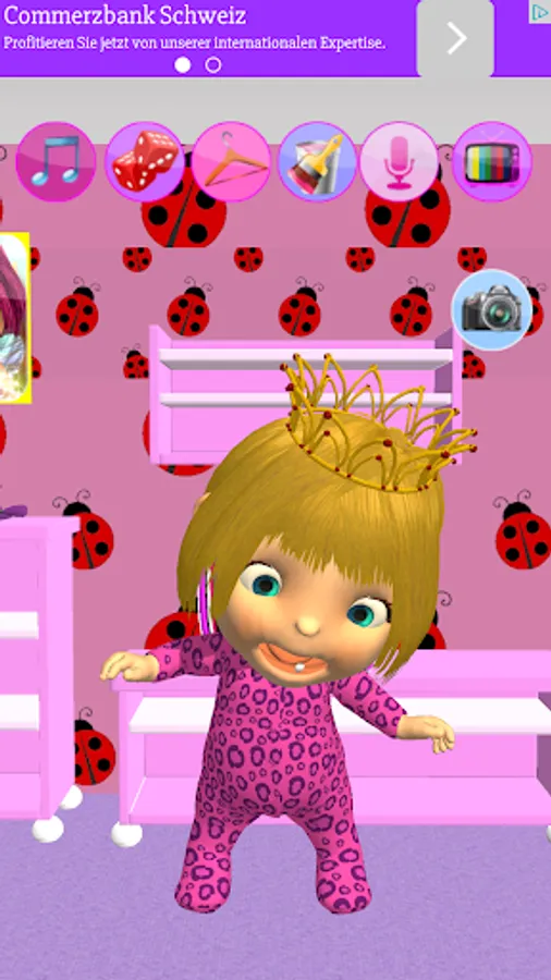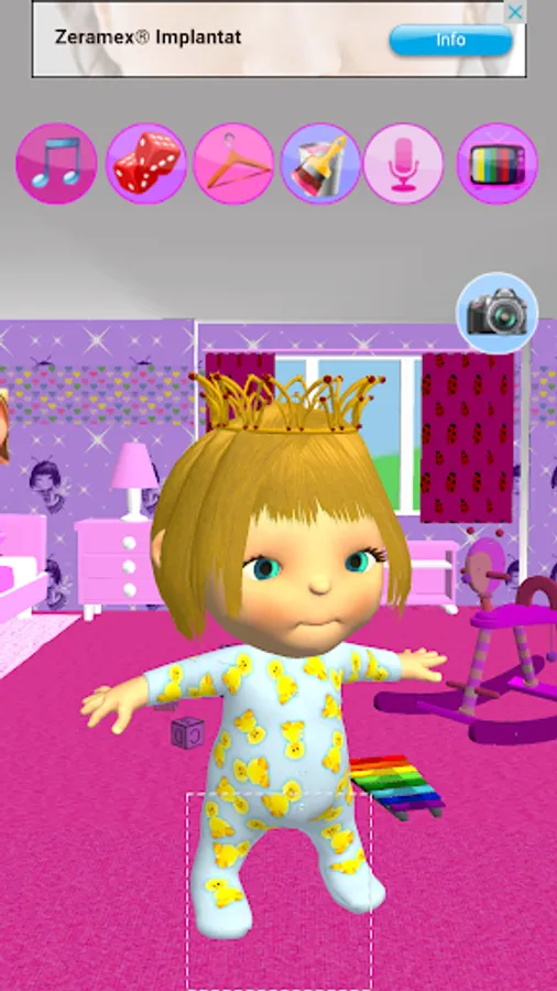 Meet the talking baby girl and have fun discovering all her fun activities. Take her by the hand and let her show you all the different toys she has in her bed room.