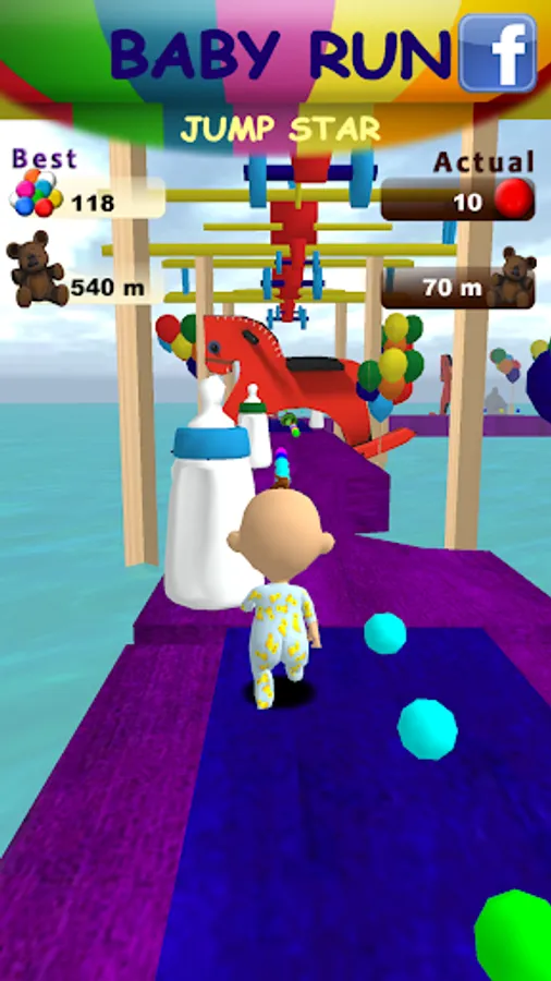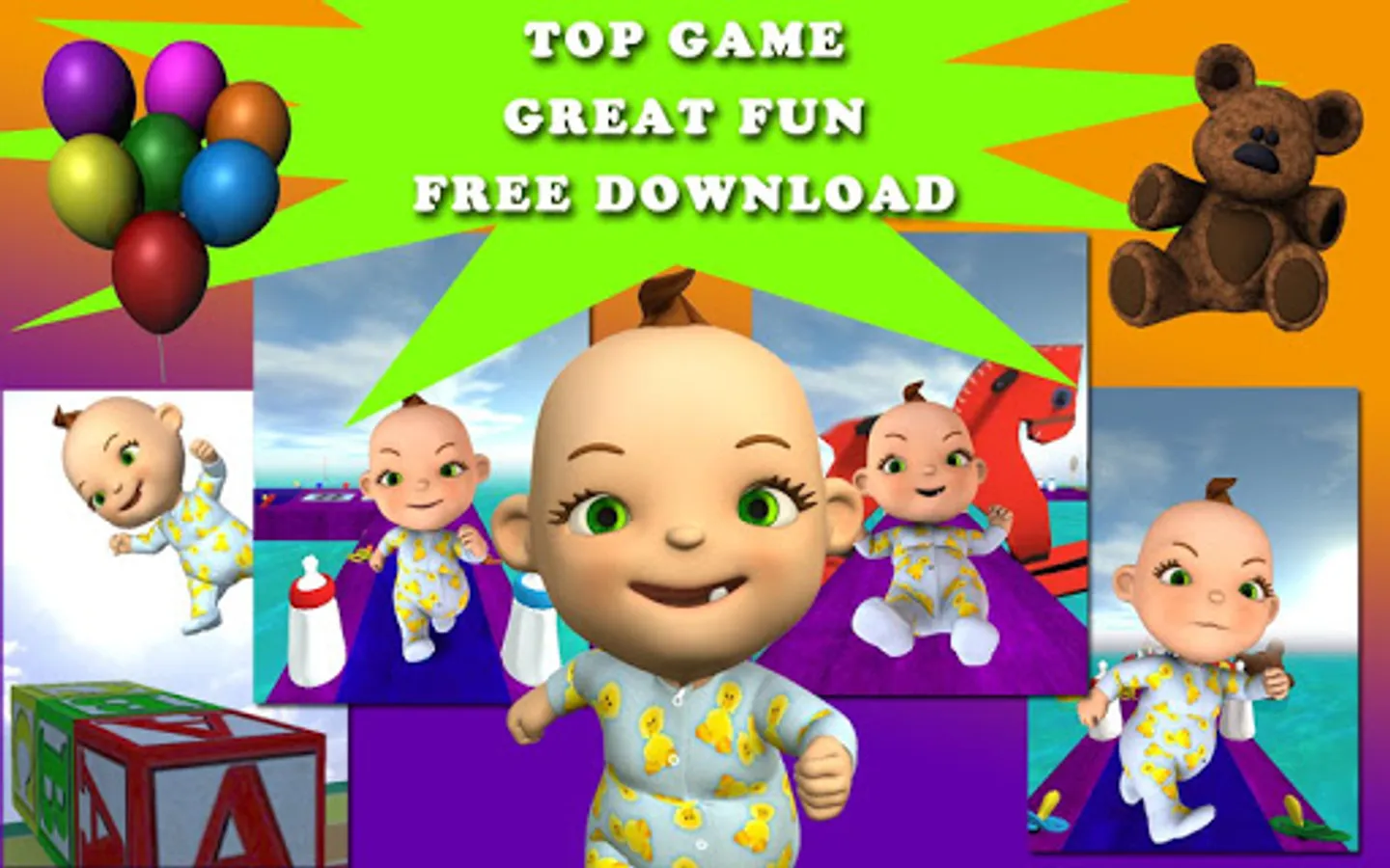 Your task is to try and make the baby’s dream as long and pleasant as possible by helping him in avoiding all the toys that obstruct his path. Run, skip and evade a great amount of rocking horses, tricycle, green plush hedgehogs, jump from giant cubes to prevent the baby from falling into the water etc.