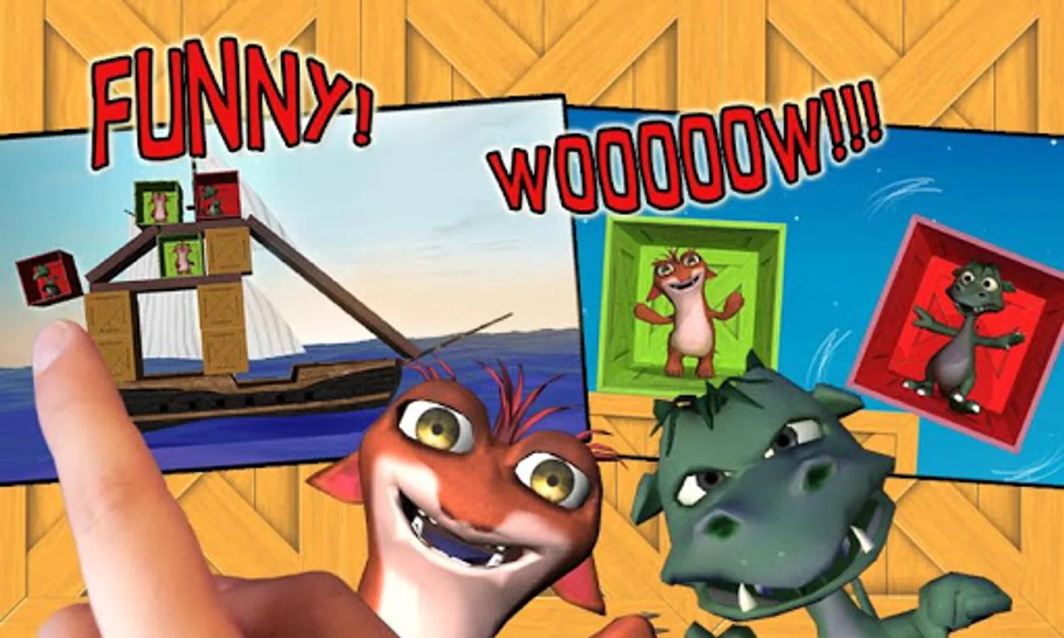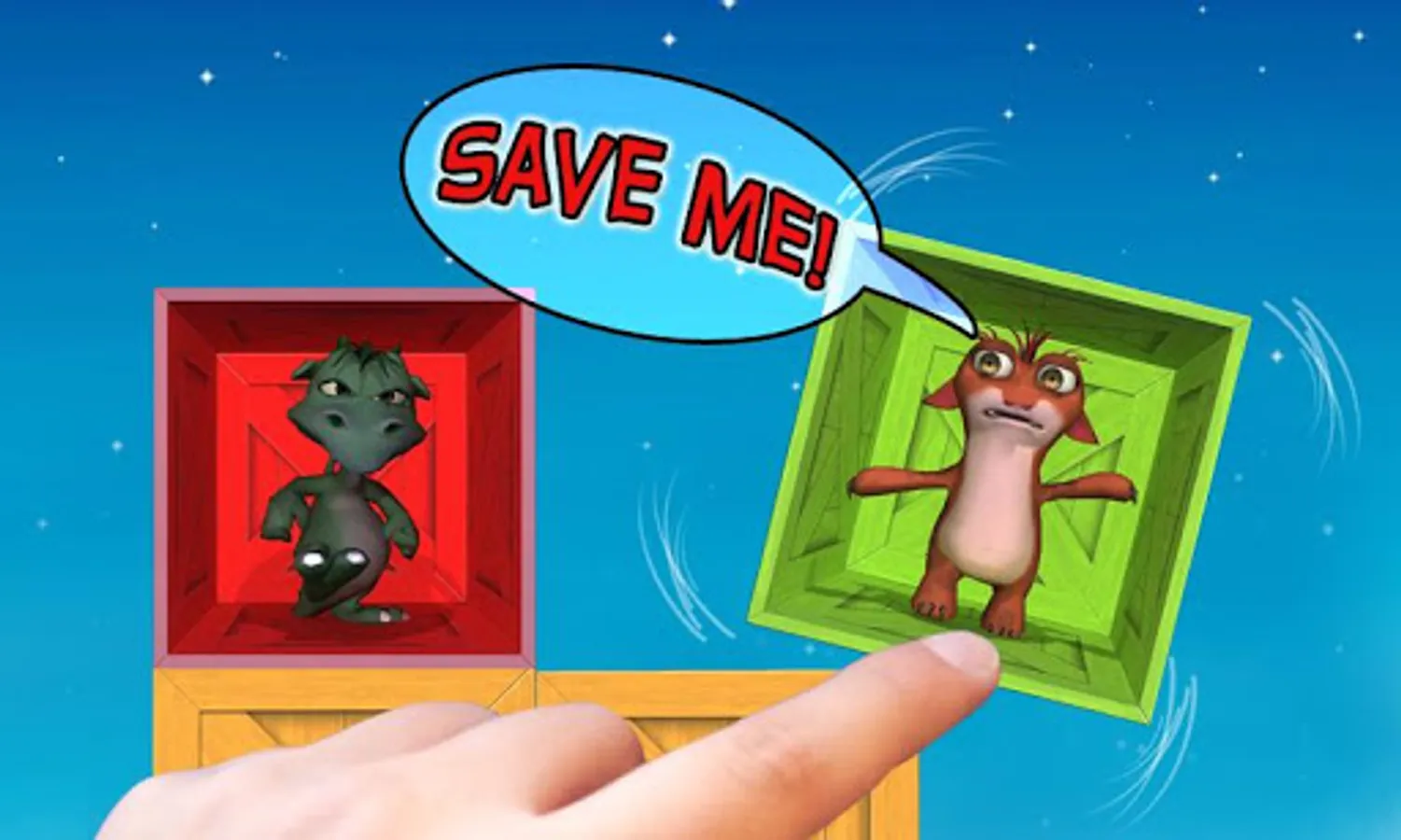 Your task is to save the rorrpies by blowing up the brown wooden boxes and planks that separate the two beasts from each other, in order to make the dragons fall into the water.