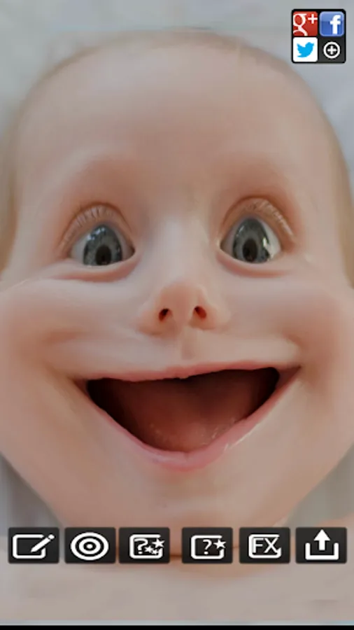 Take a downloaded photo or one of your gallery and distort, bend, stretch or melt the face as you like.