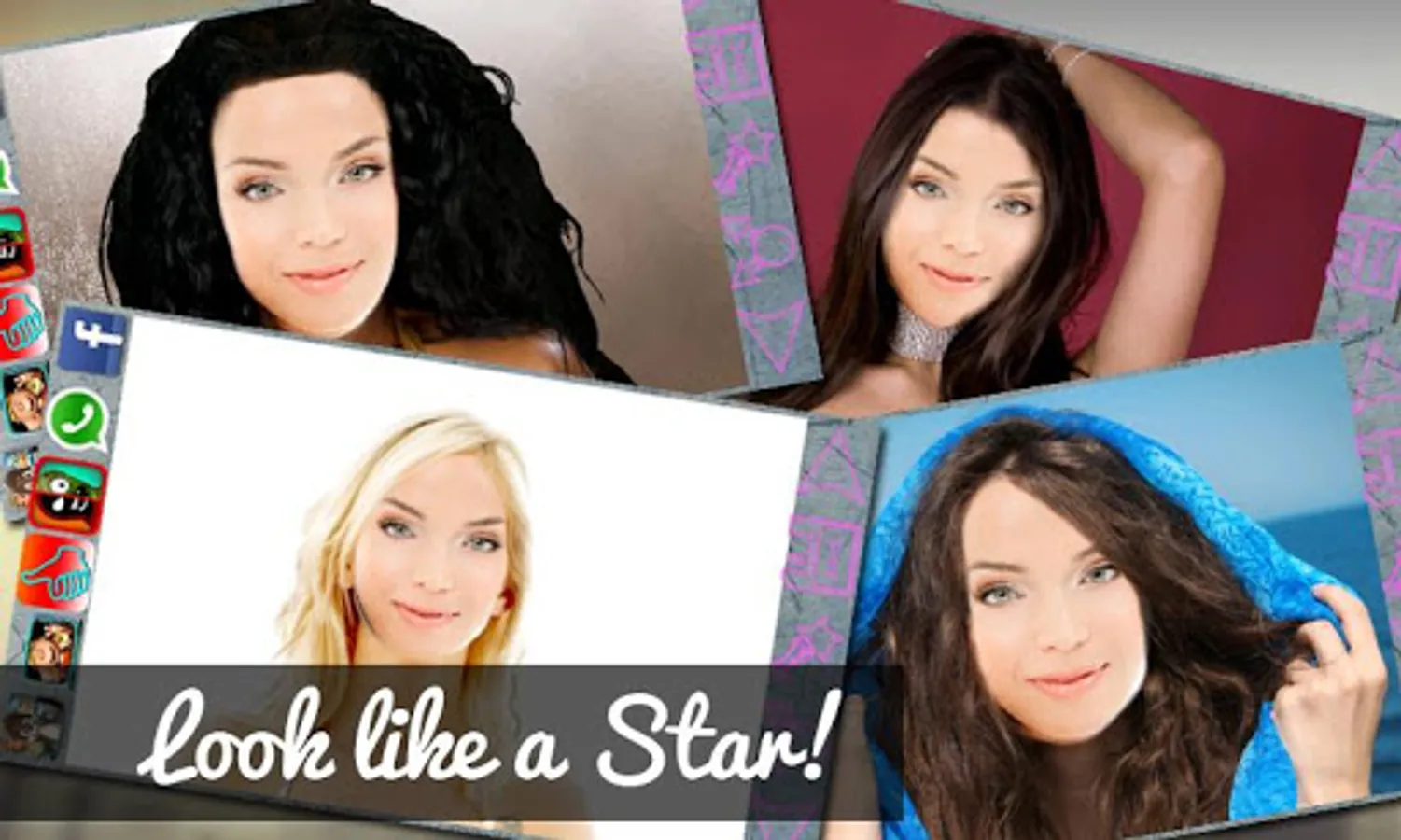 Accessoires: Add some particular gadgets to your pictures as for example pretty cartoon hats, glowing wigs or some nice sunglasses. Furthermore you can beautify your pictures with some glittering and funny stickers like roses, hearts, smiles or use some speech bubbles to communicate something with your pictures.