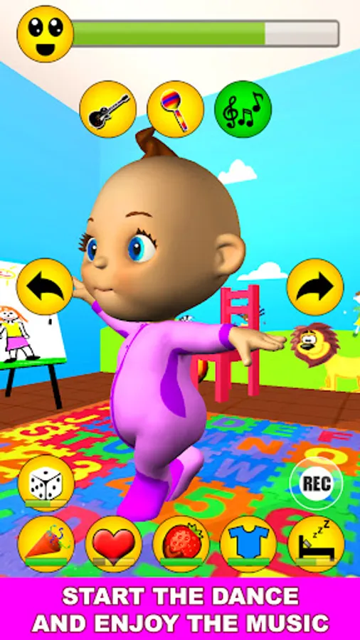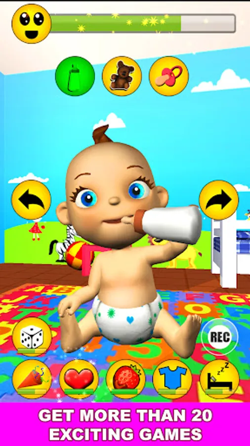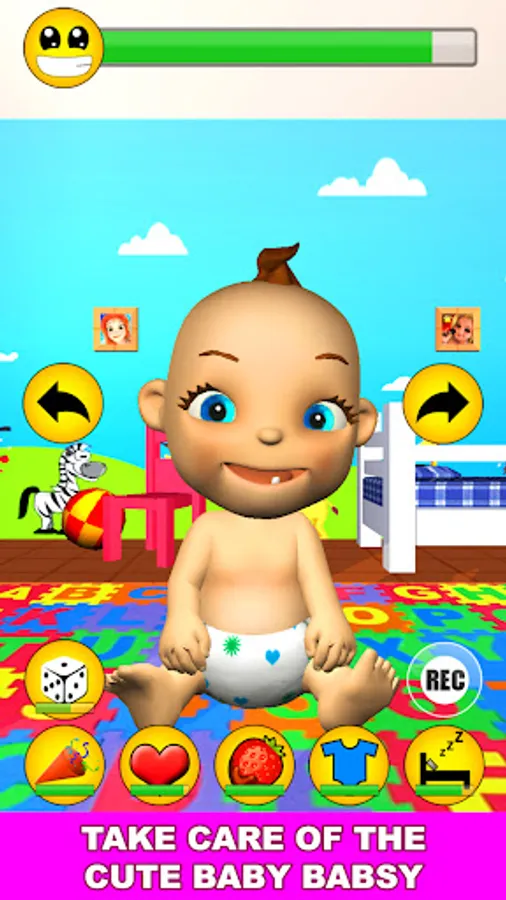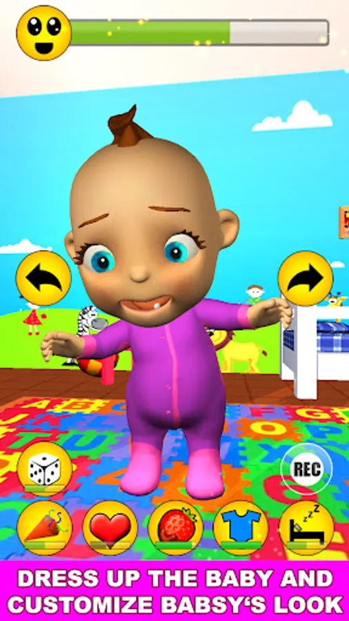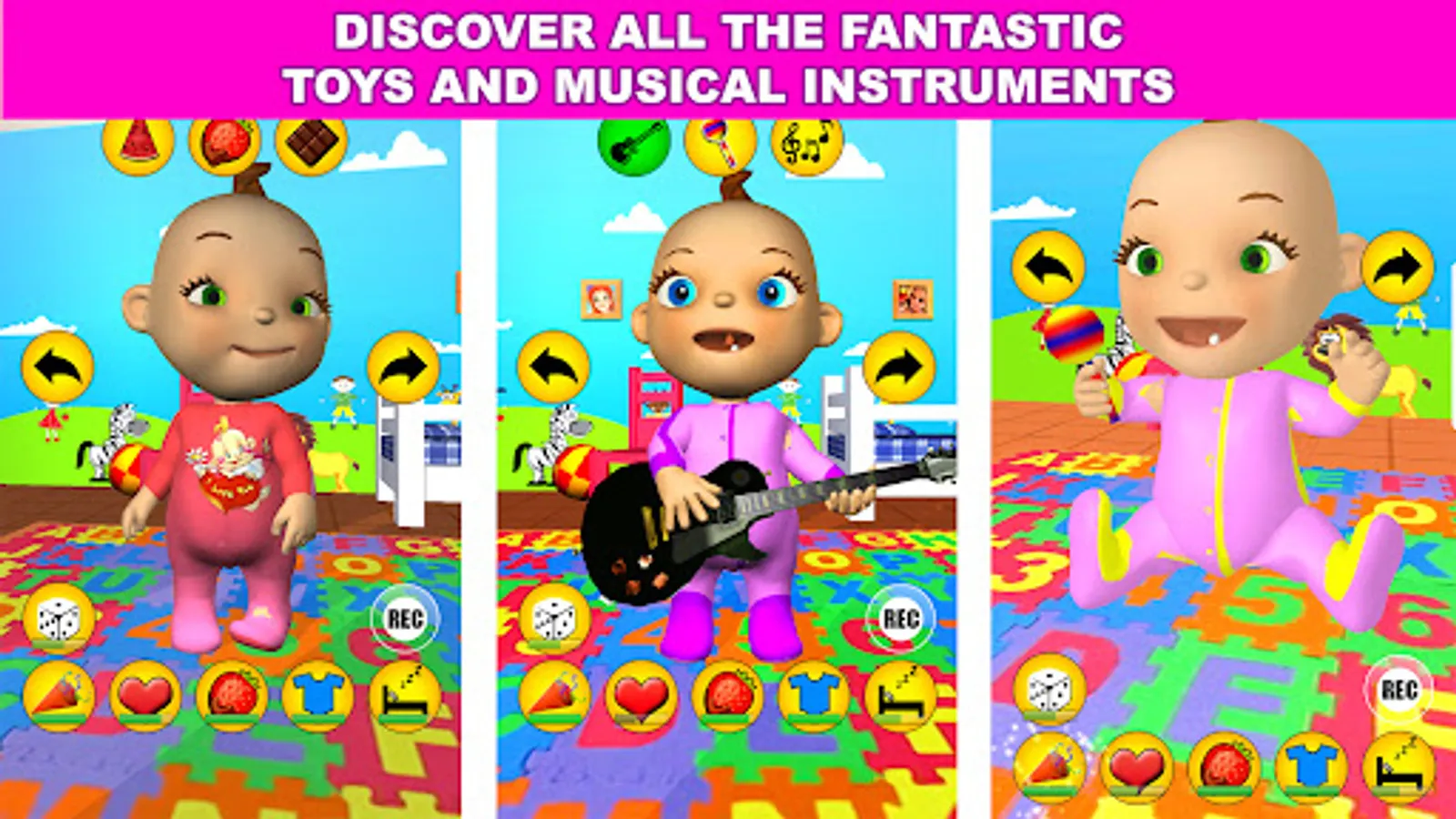 Meet Babsy the talking baby in her playroom. Talk with her and she will repeat everything you say and respond to your touch.