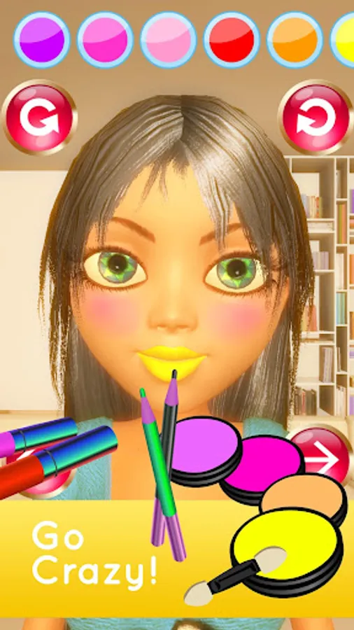 Some of the make-up products will automatically be applied on the model by simply selecting the desired icon (color), other will need to be applied with your finger.