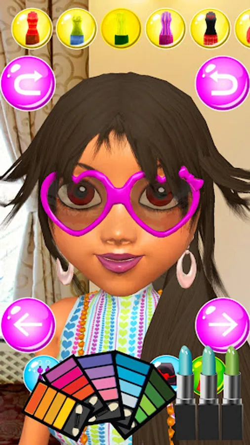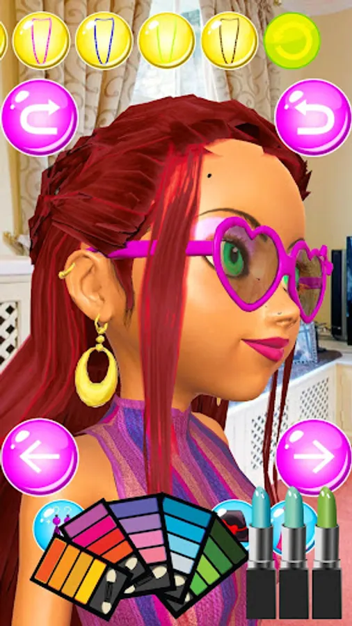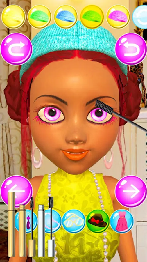 As second step help her choose the best matching mascara, hair color and style. Moreover if you should think that she would look nicer with a different eye color, you will be able to apply her some colored contact lenses.