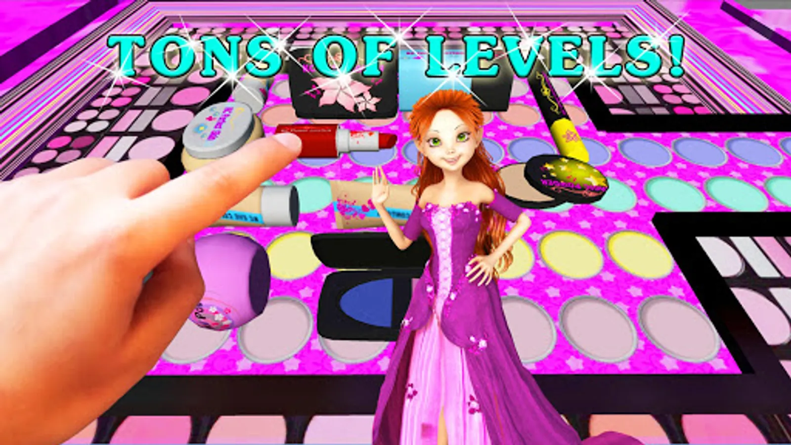 Princess Make Up 2: Salon Game is a challenging and addictive unblock puzzle game. The goal of the game is to get the red lipstick out of the colorful makeup kit by moving the other makeup stuff out of the way. There are many levels ranging from easy to very difficult. Move the different objects (pencils, nail polish, mascara, blush, etc.) wisely to open a path.