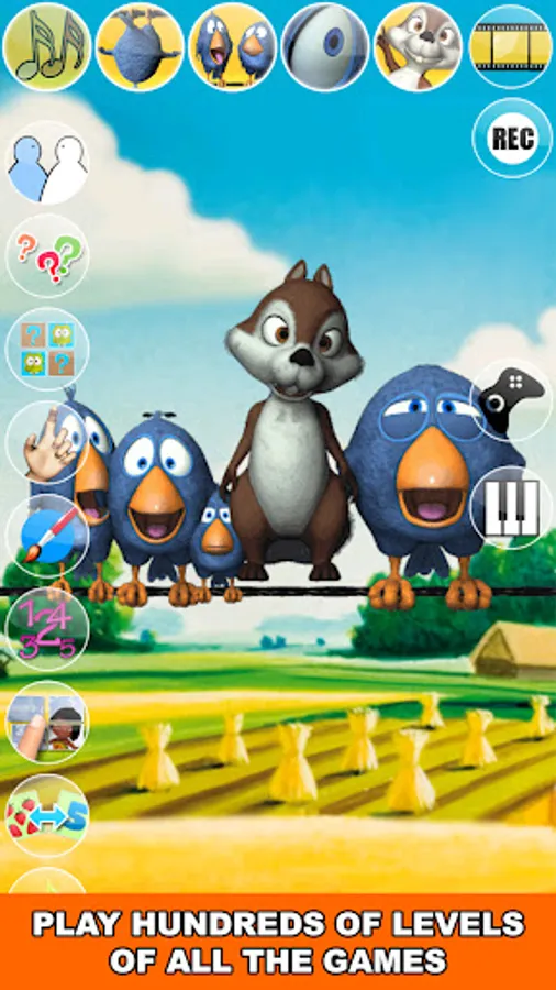 Talk to the talking birds on the wire. They answer with their funny voices and react to what you say or your touch. With over 30 exciting games and many levels to play!