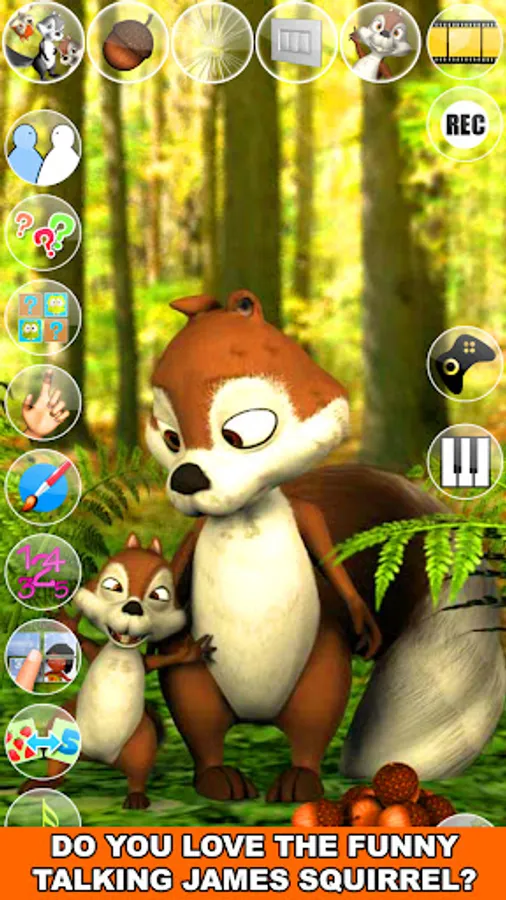 Talk to the talking James Squirrel. He answers with his funny voice and reacts to what you say or your touch. In addition, play with James and his Piano! Play your favorite Song and James will love to sing for you. James has also more than 30 exciting games with many levels to play!
