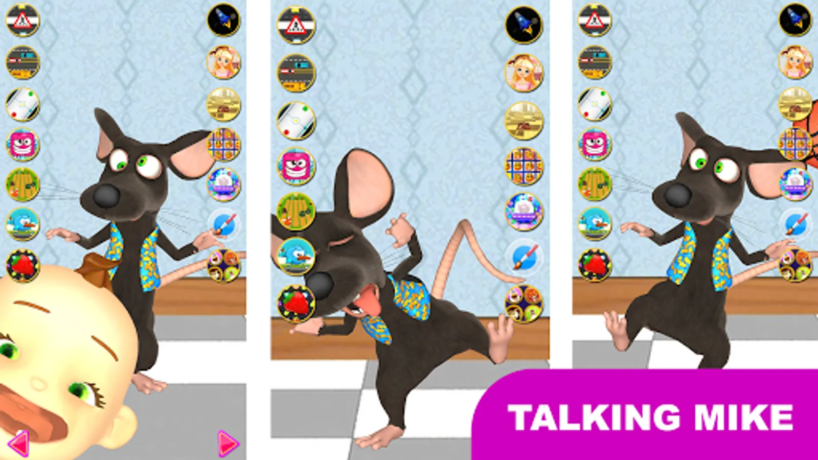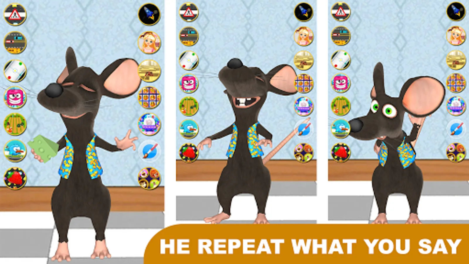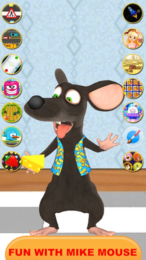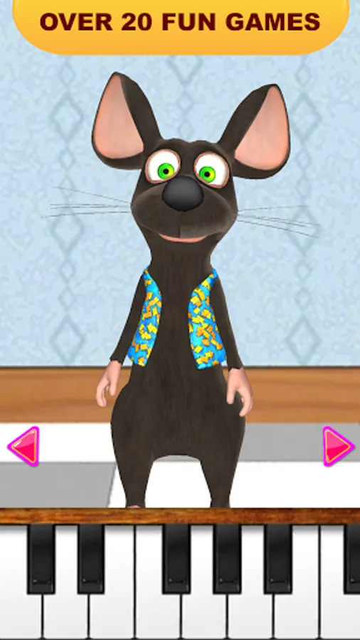 Talk to Talking Mike Mouse the talking animal. The talking mouse answers with his funny voice and reacts to what you say or your touch. Touch his Nose, his head, ears, arms, legs or his belly and see what happens. In addition, play with the virtual pet Mike Mouse and his Piano! Play your favorite song and Mike Mouse will love to sing for you. Mike has also a lot of exciting games with many levels to play!
