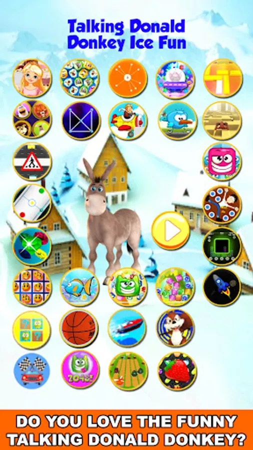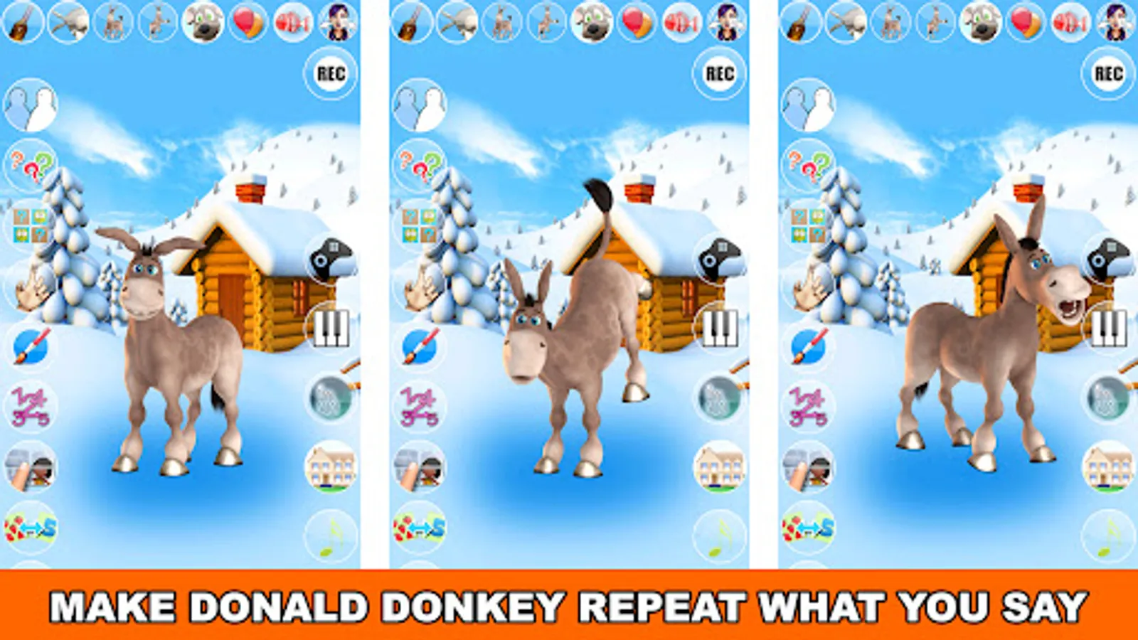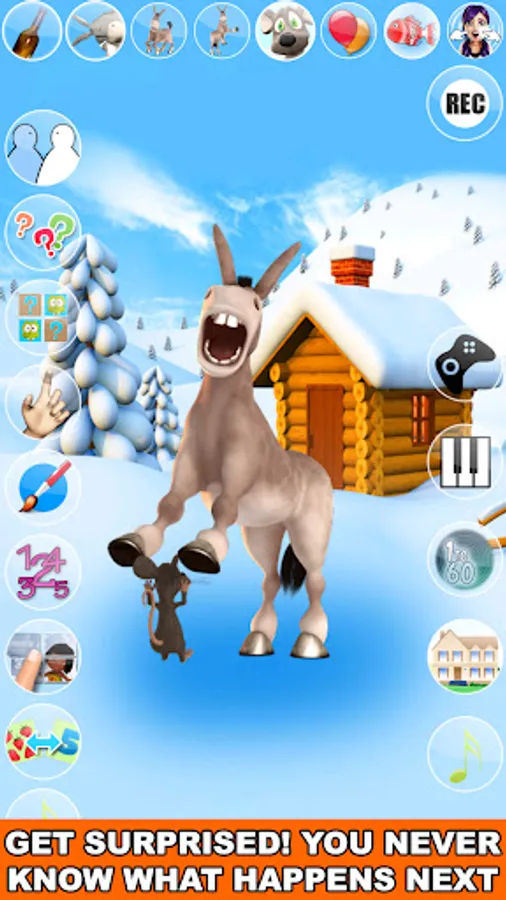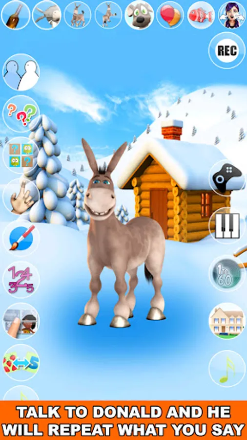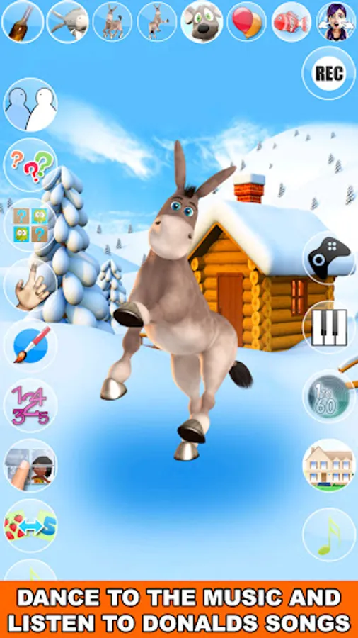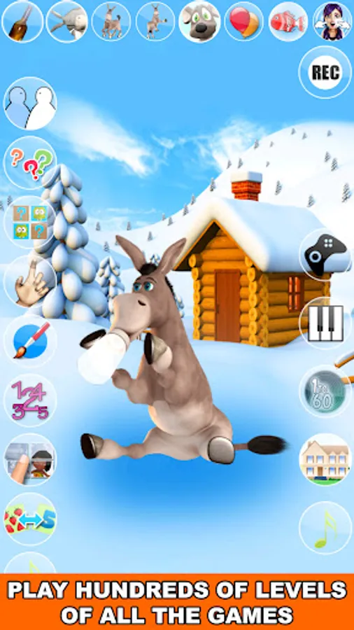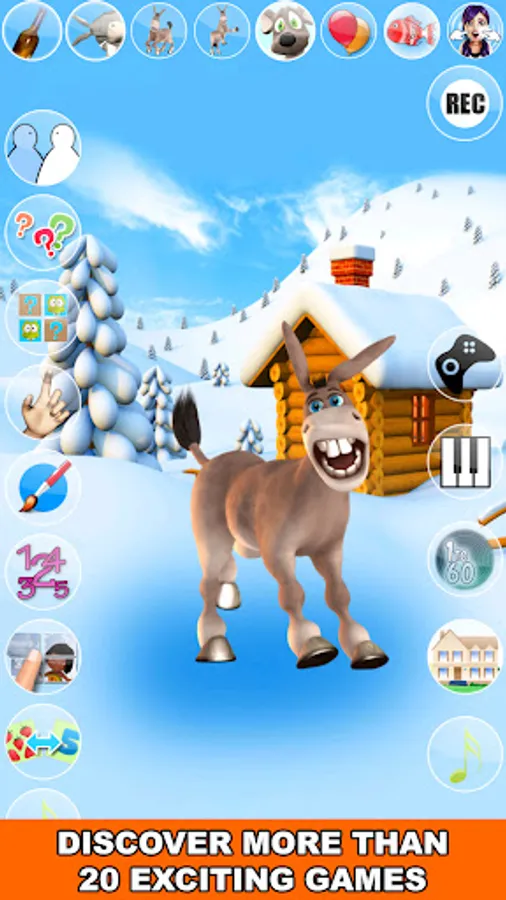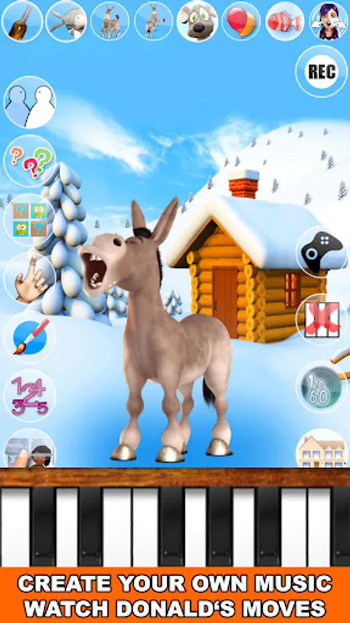 The winter and the snow have arrived at Donald’s farm. Talk to the talking donkey Donald and he will repeat everything you say with his funny voice. Touch him or the environment around him and he will react in amusing ways. Spend some time with him, dance, jump around, play the piano and have a lot of fun. You will also be able to play a lot of exciting games.