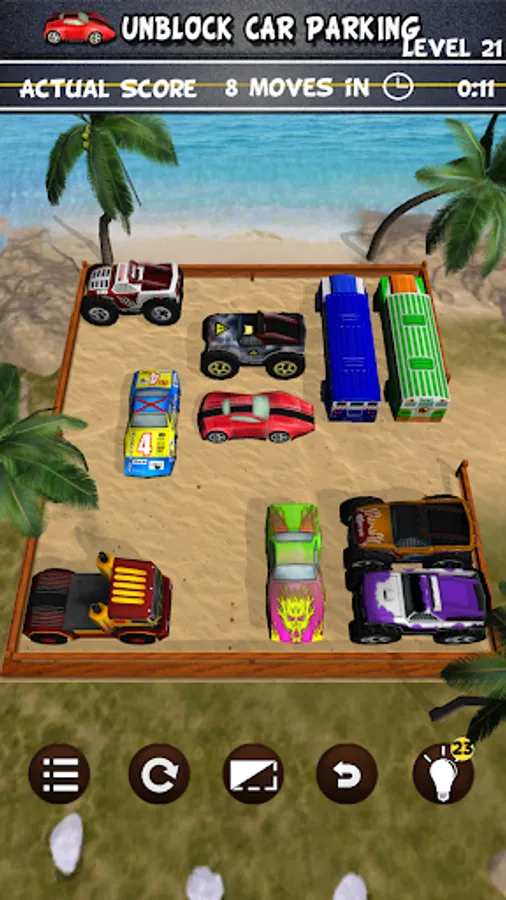 Unblock Car parking is a challenging and addictive puzzle game. The goal of the game is to get the blocked red car out of some busy parking areas by moving the other automobiles out of the way. Help the red racing car get out of some difficult parking situations and traffic jam. Unblock Car Parking comes with 16 chapters divided in 3 different parking locations: county side, city and beach. There are many levels ranging from easy to very difficult. Move the different vehicles (trucks, jeeps, carbon racing cars, bus, etc.) wisely to open a path.