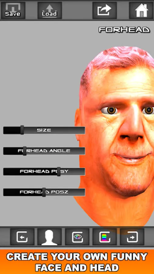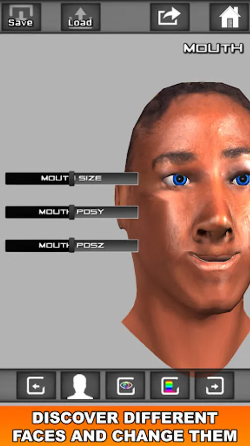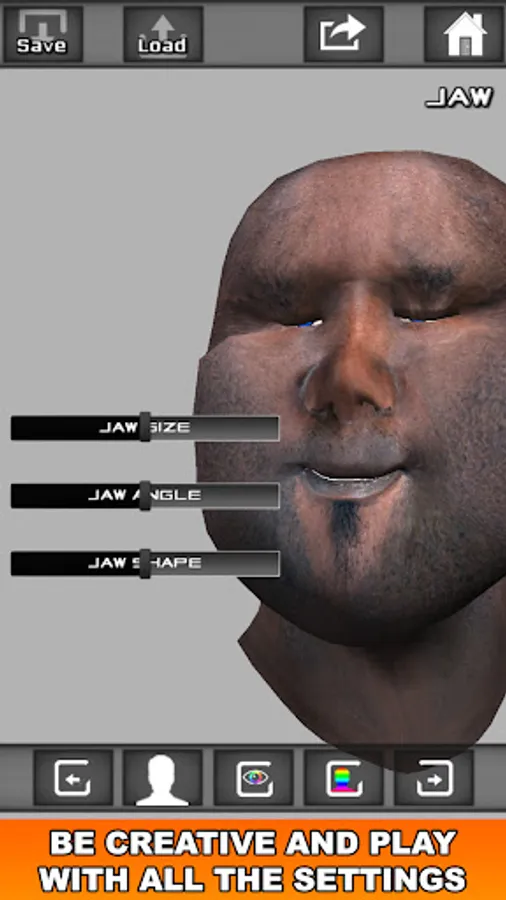 There are more than 50 setting possibilities to play with! You can change the size of the lower lip and upper lip individually, flatten or stretch the nose, make bigger or smaller nostrils, give a different angle to the forehead, transform the jaw size and many other fantastic possibilities.