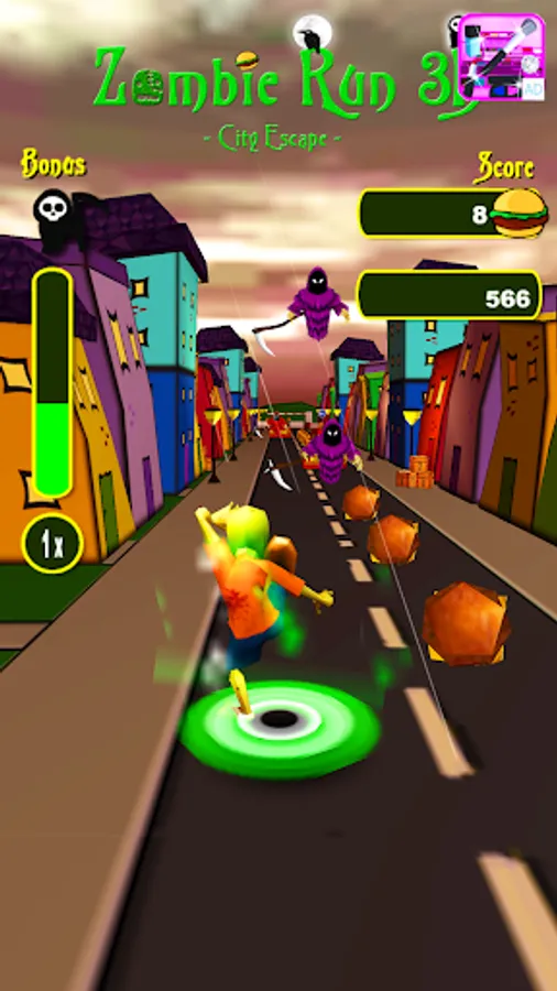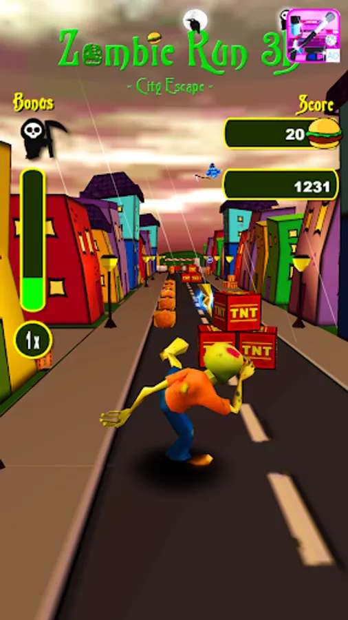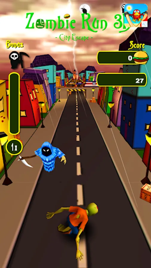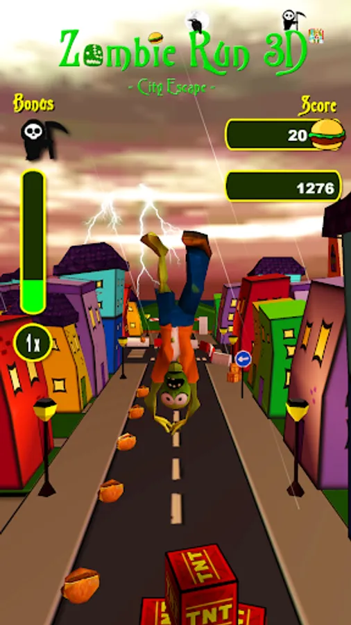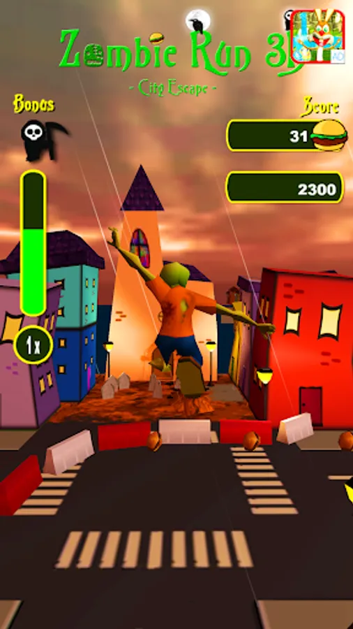 Race through the small city and let the Zombie have his last hearty meal before he is going to rest in peace.