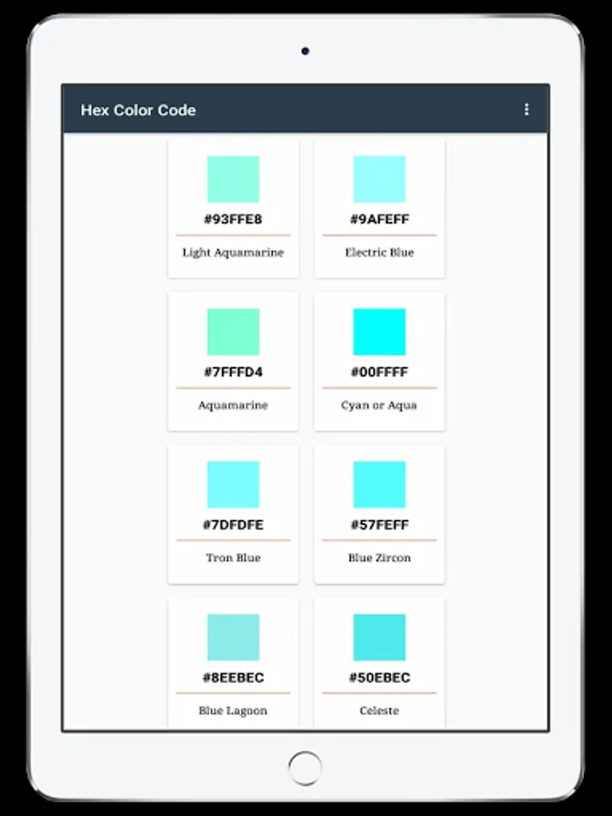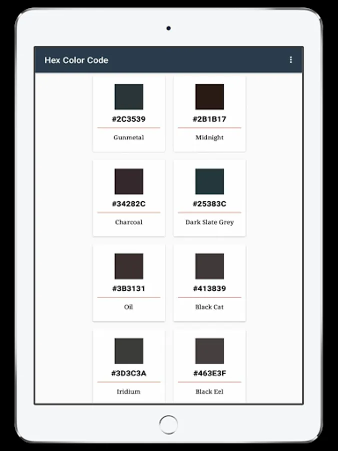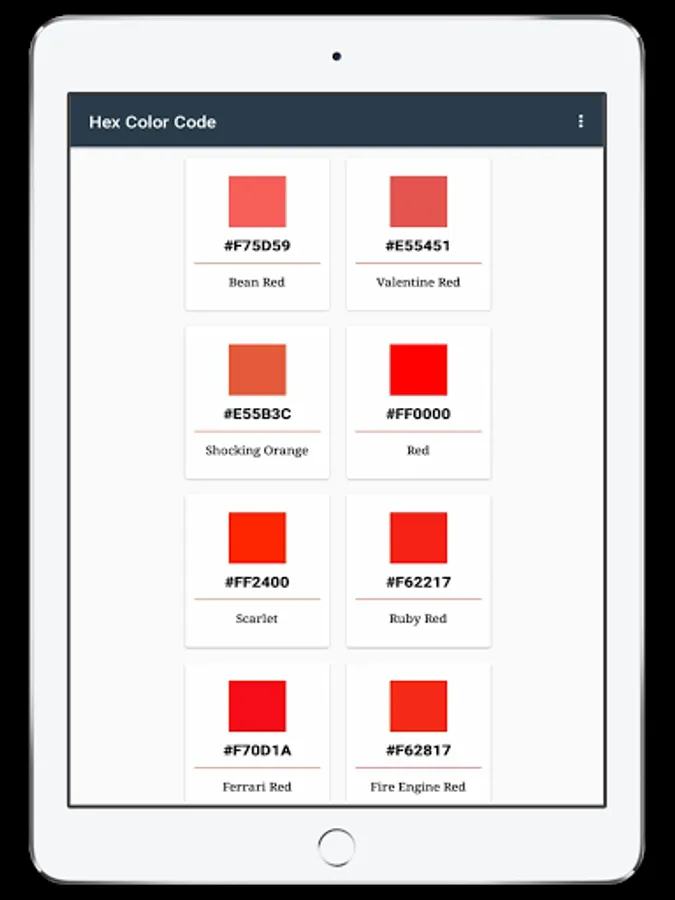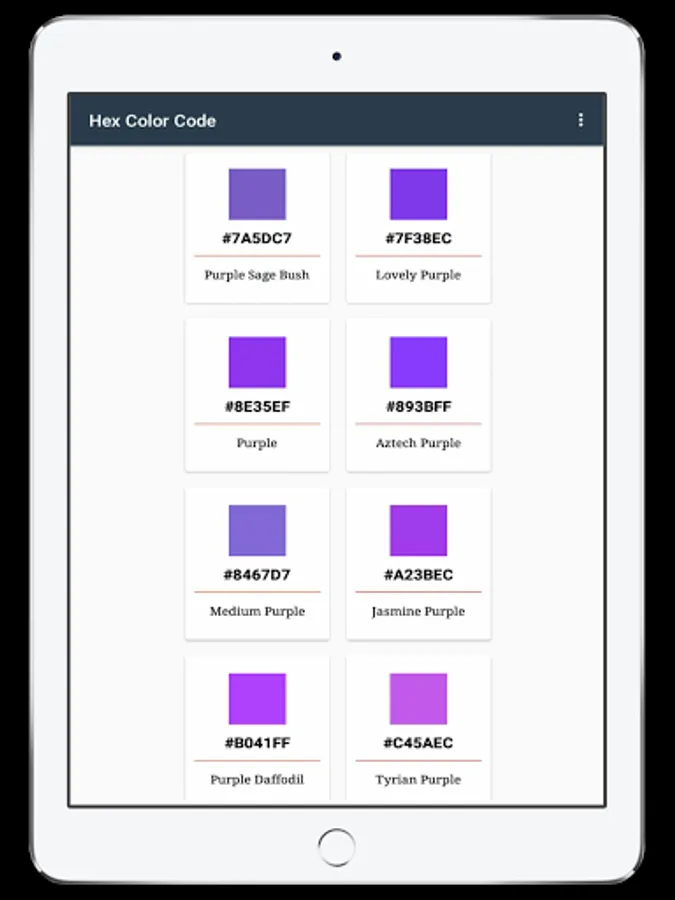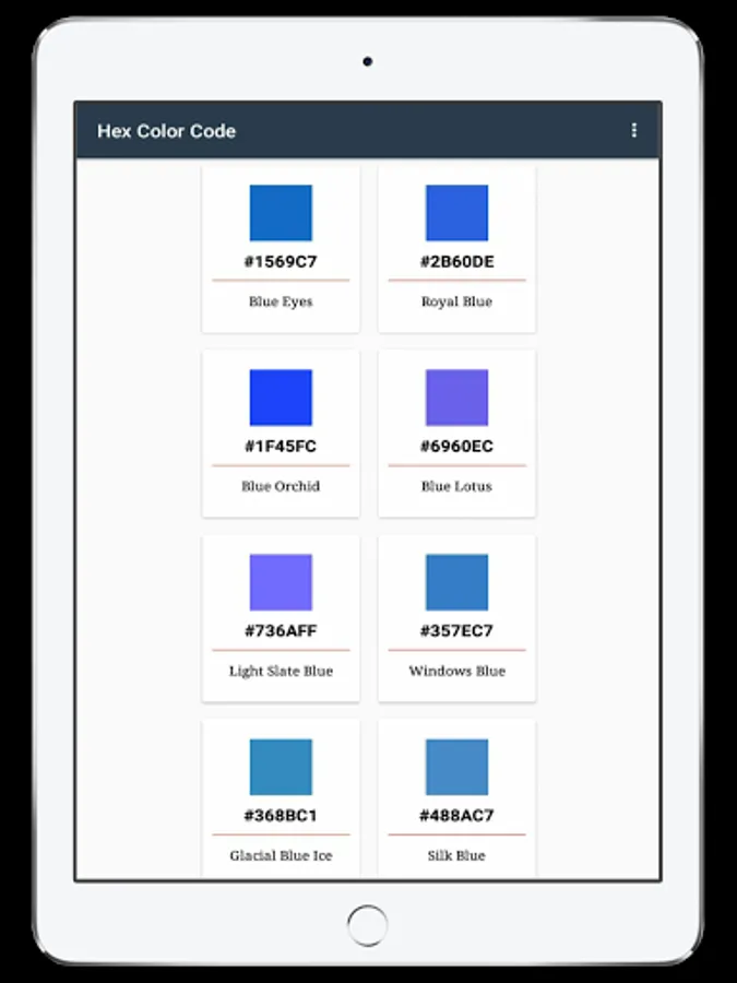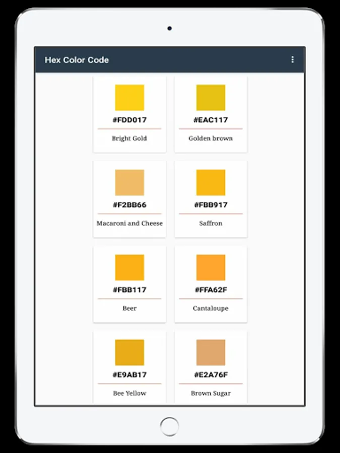 Hex Color Code app is very important for developer. There are so many color code in this app. you will get easily hex color code from this app. Hexadecimal color values are also supported in all browsers.