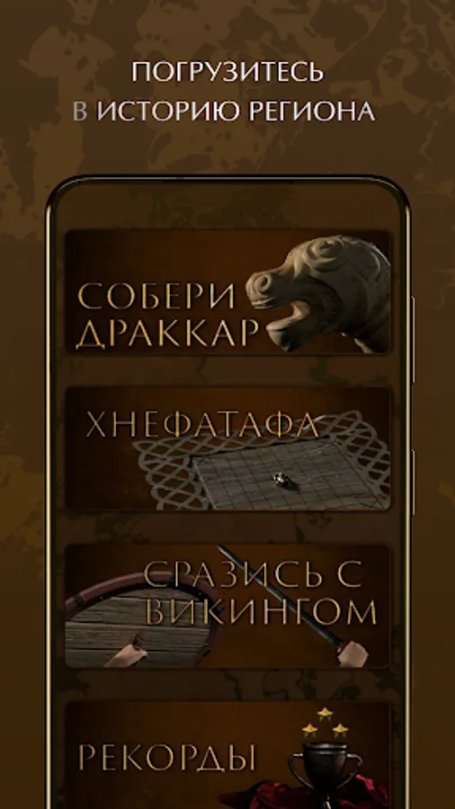 The application also contains 3 mini-games that will help you immerse yourself in the Middle Ages, build your own longship, understand what the Vikings played before the invention of chess, and fight dangerous opponents with swords and axes.