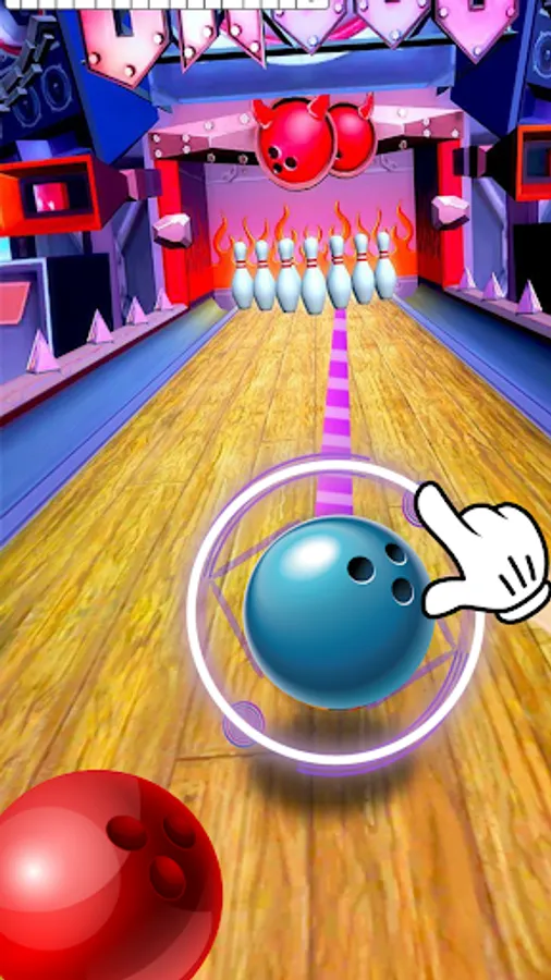 π Aim and let the bowling ball spins & rolls to hit the pins!