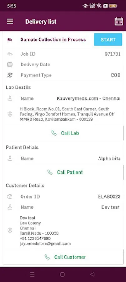 The Phlebo receives fairly-detailed sample details like address including sample amount, payment mode, etc.