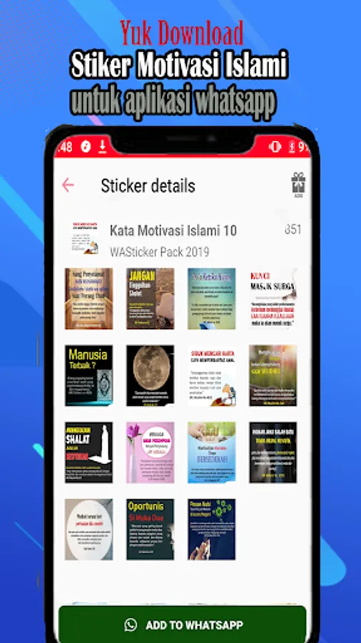 This application contains motivational words in the form of stickers, which are used to chat on the whatsapp application.