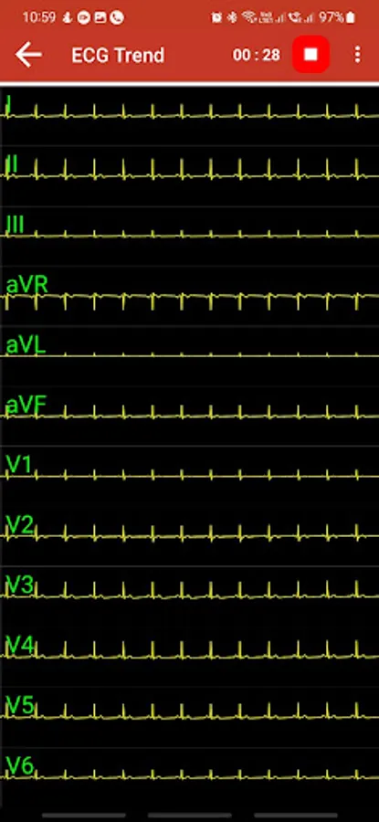 - Display real time ECG waveforms received wirelessly from the cardiograph.