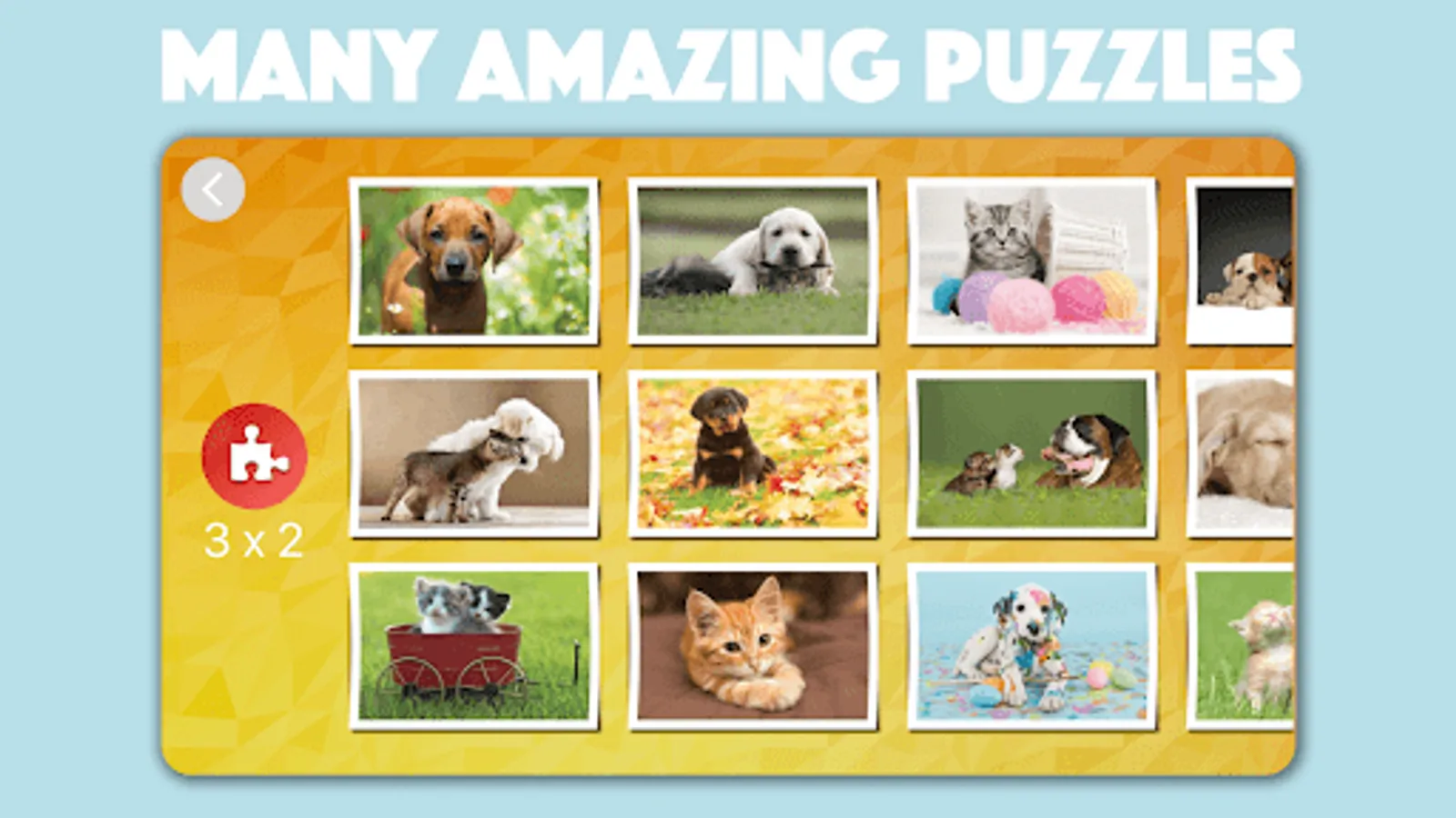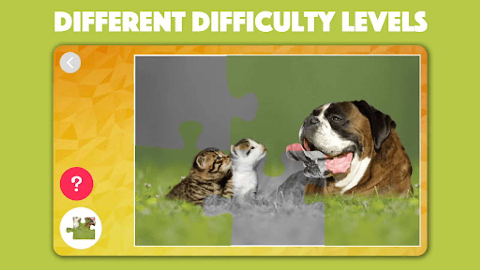 A fun and cute Cats & Dogs Cartoon Jigsaw Puzzle Game for kids & toddlers