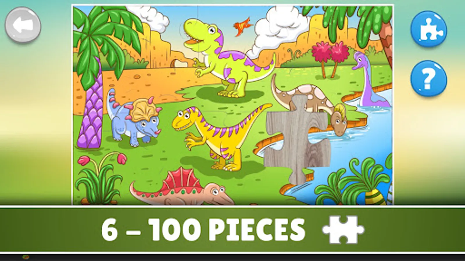 Choose from 6, 9, 12, 16, 20, 30, 56, 72 and 100 pieces to adjust the difficulty to your child's skill level. With over 20 amazing puzzles in HD quality and unique rewards for every puzzle, your child will love to explore and learn with Dino Jigsaw Puzzle.