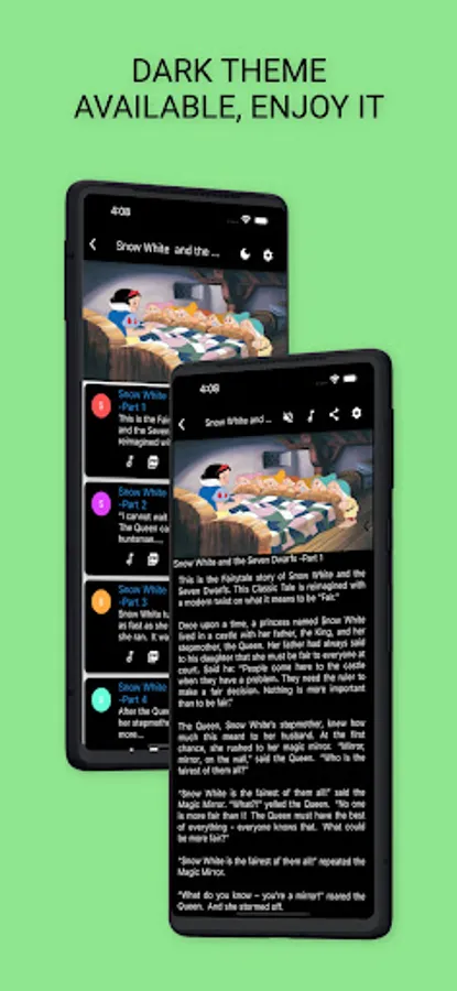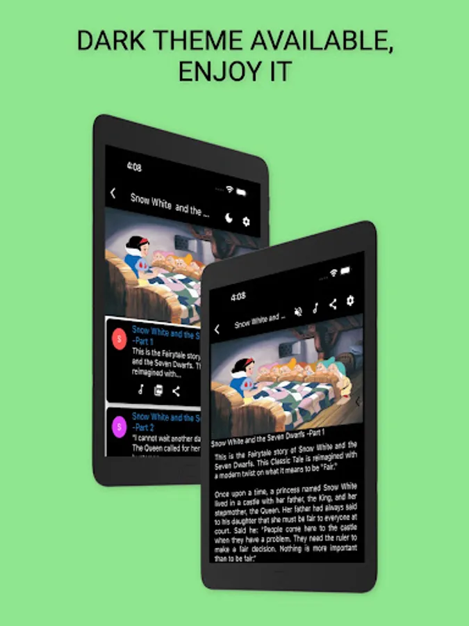 Read and Listen English, Audible English Stories App allows you to have story read out to you simply by pressing a button.