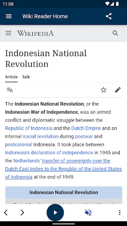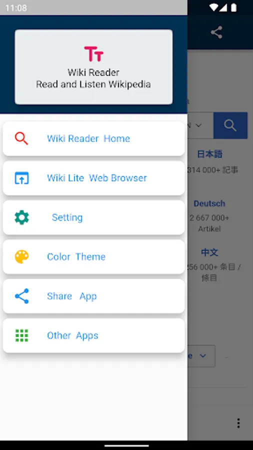 Wiki Reader is an Encyclopedia. You can listen all wiki Articles while on the go. Articles on Wikipedia are freely licensed. The heart and soul of Wikipedia is a community of people working to bring you unlimited access to reliable and neutral information. TTS support porivded.