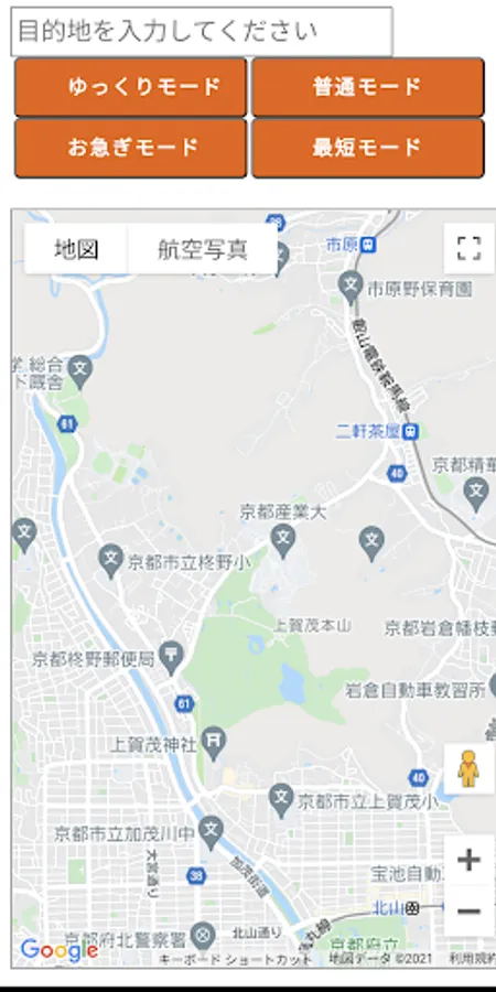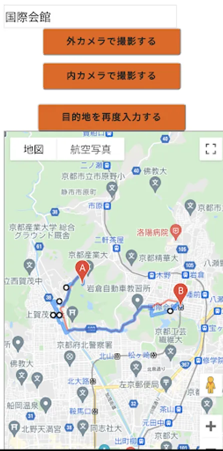 With route recommendation, you can select a route from 4 courses to your destination according to the time so that you can take a route for which you have not yet obtained an image. Red and blue routes are displayed, but red is the route of google map and blue is the route that passes through the waypoints with little information.